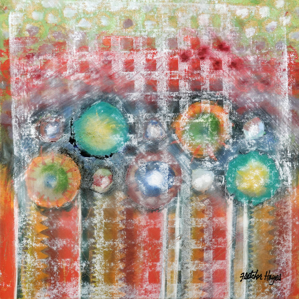 This experimental abstraction, "Razzle Dazzle," explores light and shadow within joyful hues.
