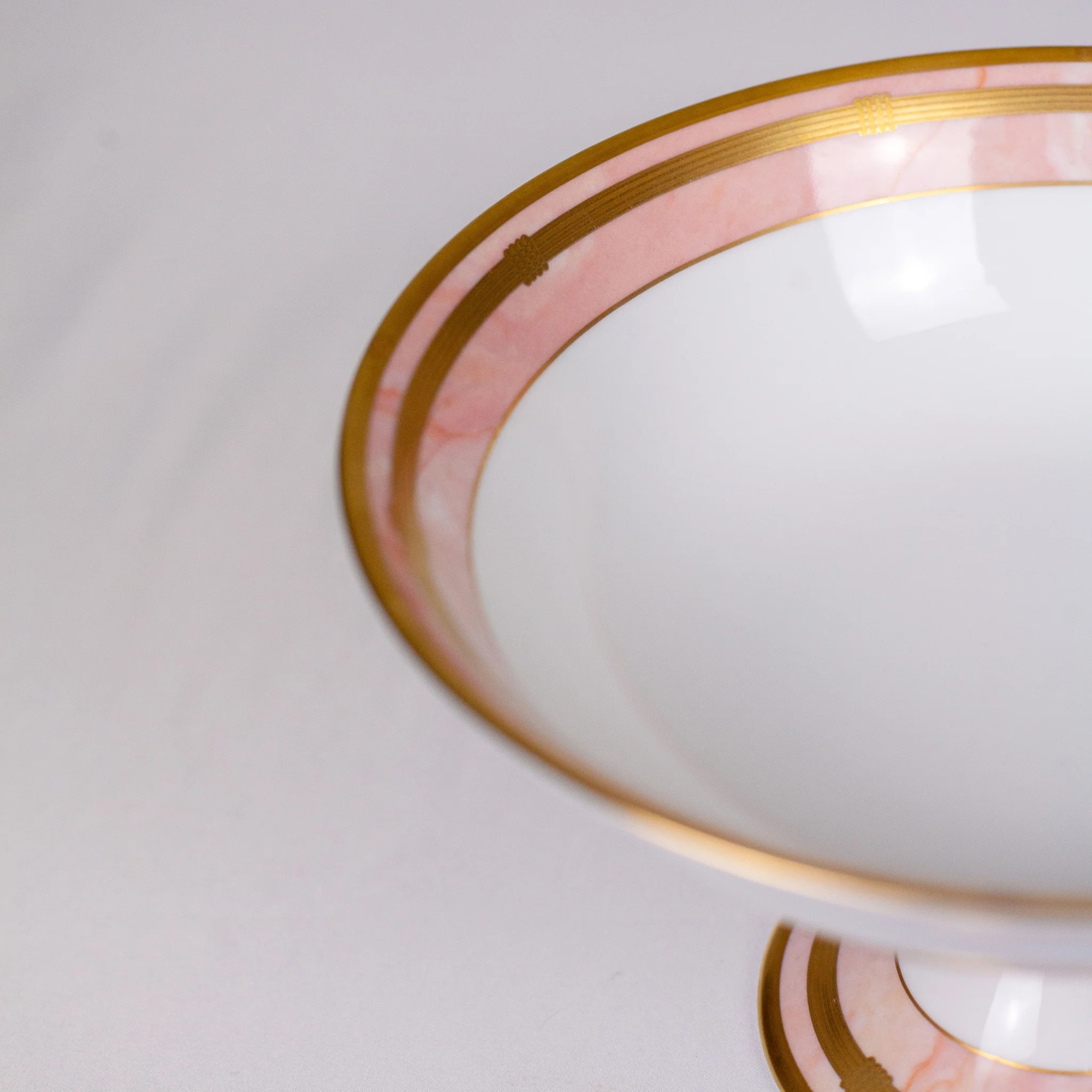 Footed Bowl, White/pink, Porcelain,Gaudron-Marbre Rose