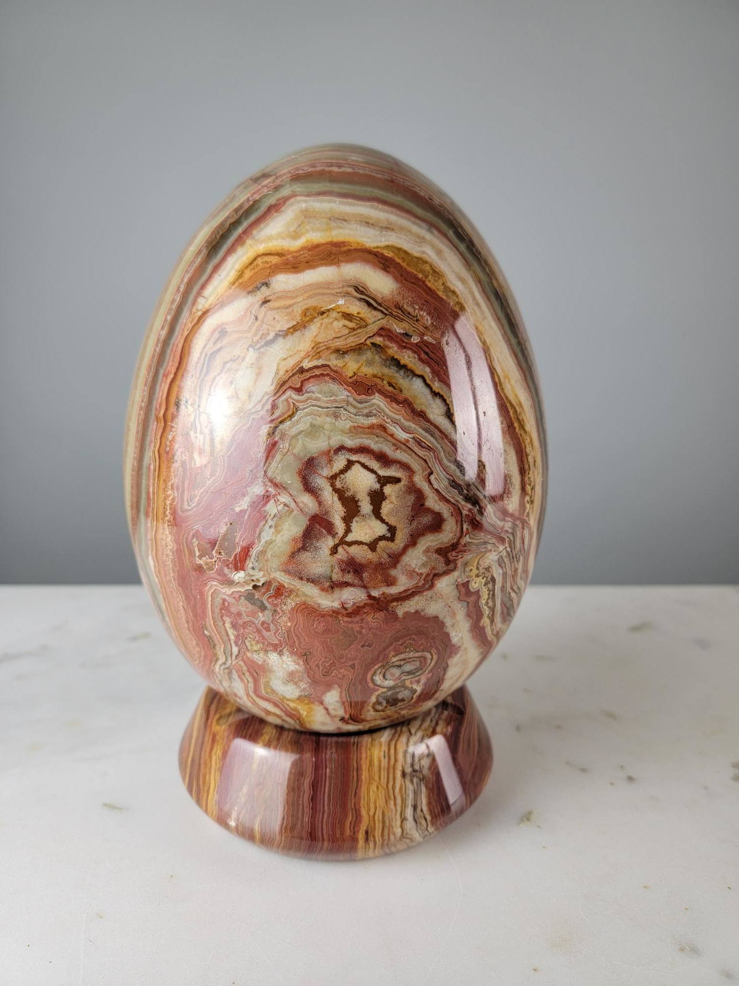 Many people believe this type of banded onyx to be a healing stone and or protective stone. A nurturing and protective stone, Brown Onyx inspires us to be more patient with ourselves, while also helping us find clarity and focus, which in turn helps us achieve and hold deeper states of meditation.