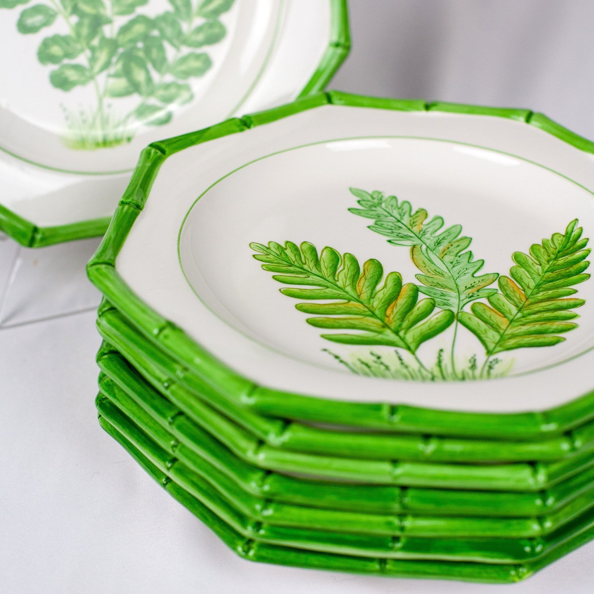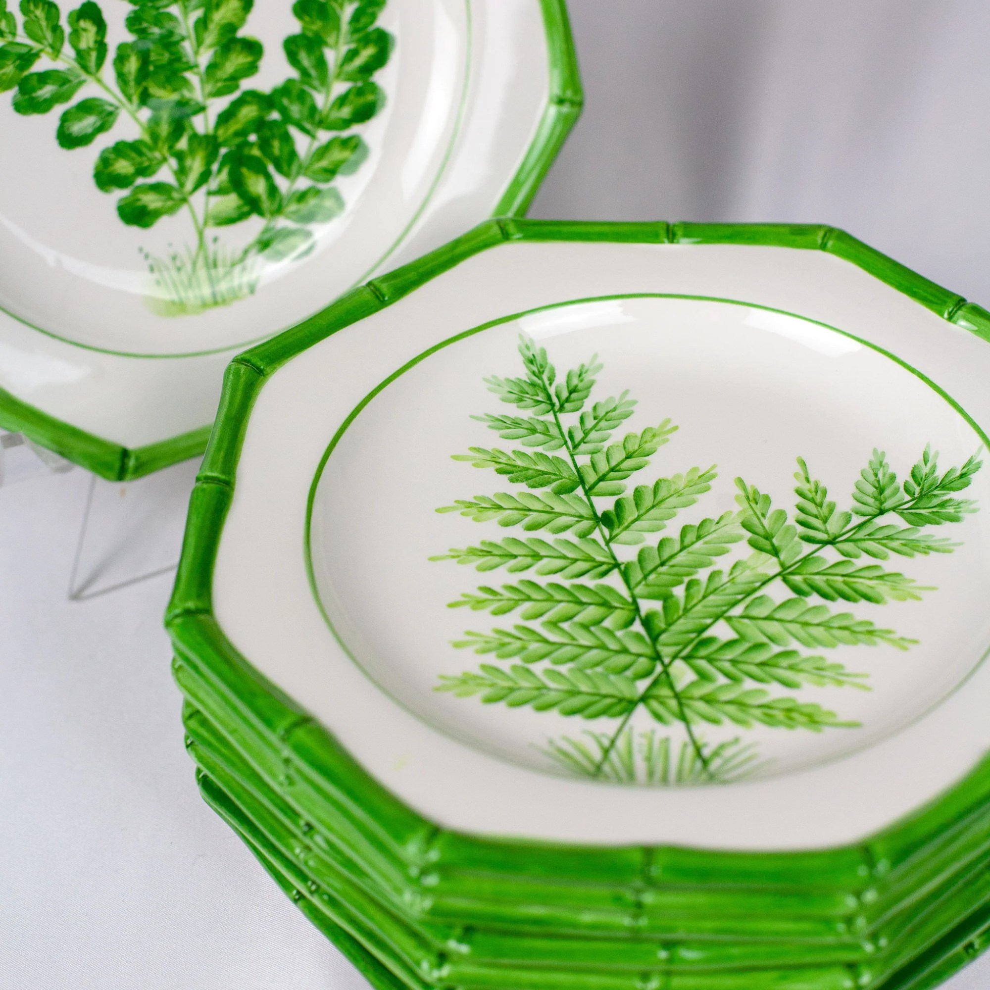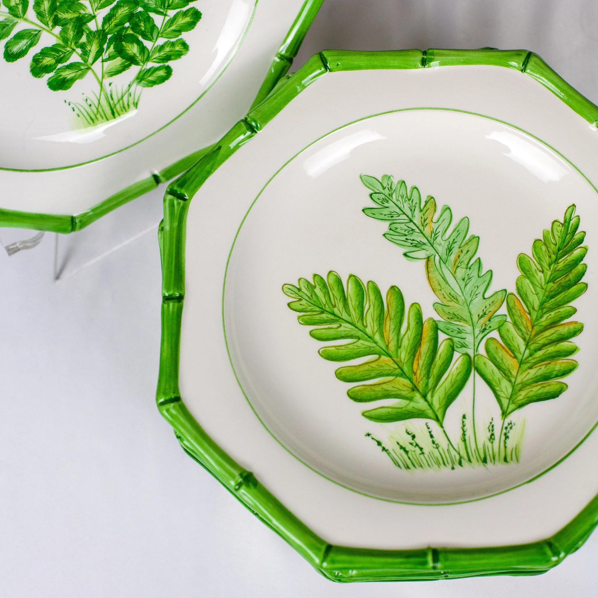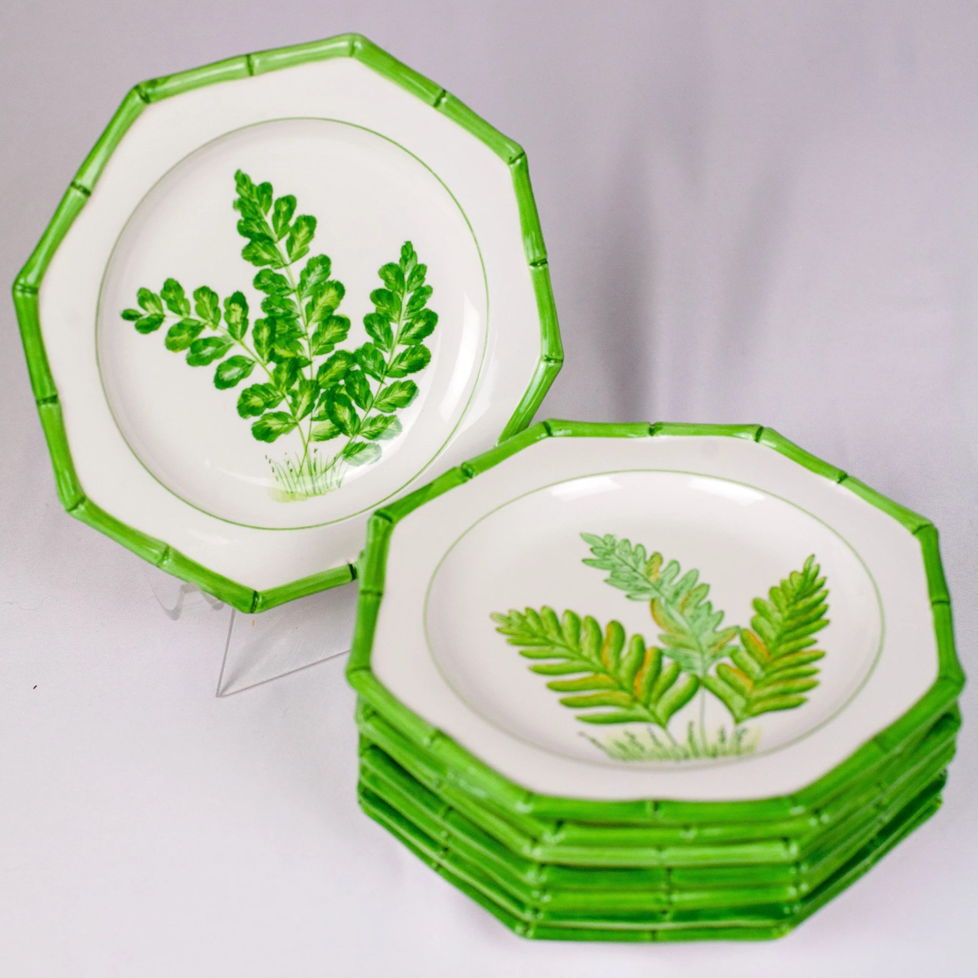 Fern and Bamboo Motif, 8 Plates and 4 Bowls