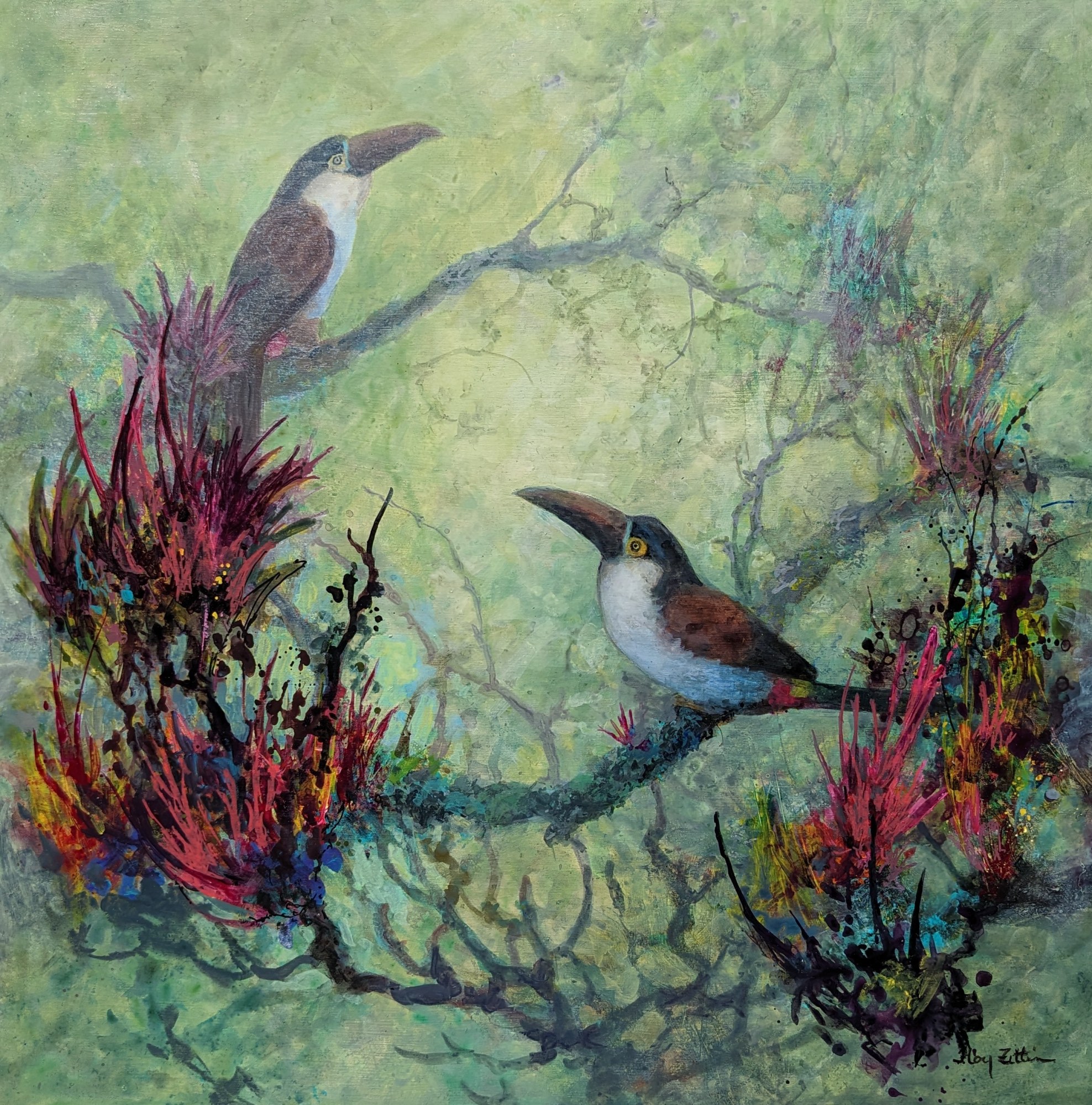 Black-billed Mountain Toucans live in small groups in the higher elevations of the Andes. We saw a very active pair foraging in the epiphytes on our last trip to Colombia.