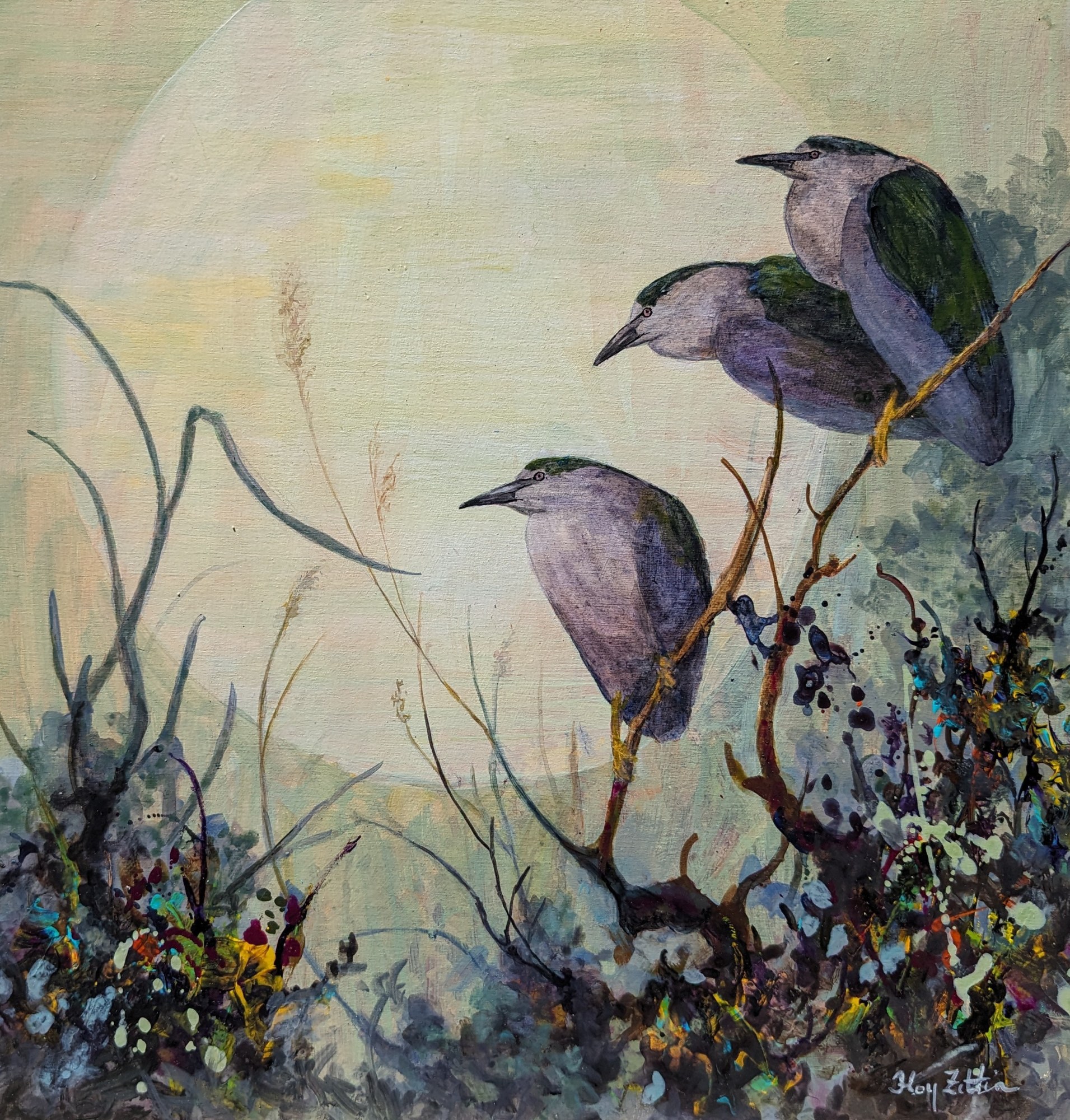 Black-crowned Night-Herons are the most widespread herons in the world and they are fairly common in the marshes around San Francisco Bay. They are a social heron and nest in colonies in the reeds emerging at dusk to forage. Black-crowned Night-Herons have a bit of a sinister look and are one of my favorite subjects to paint.