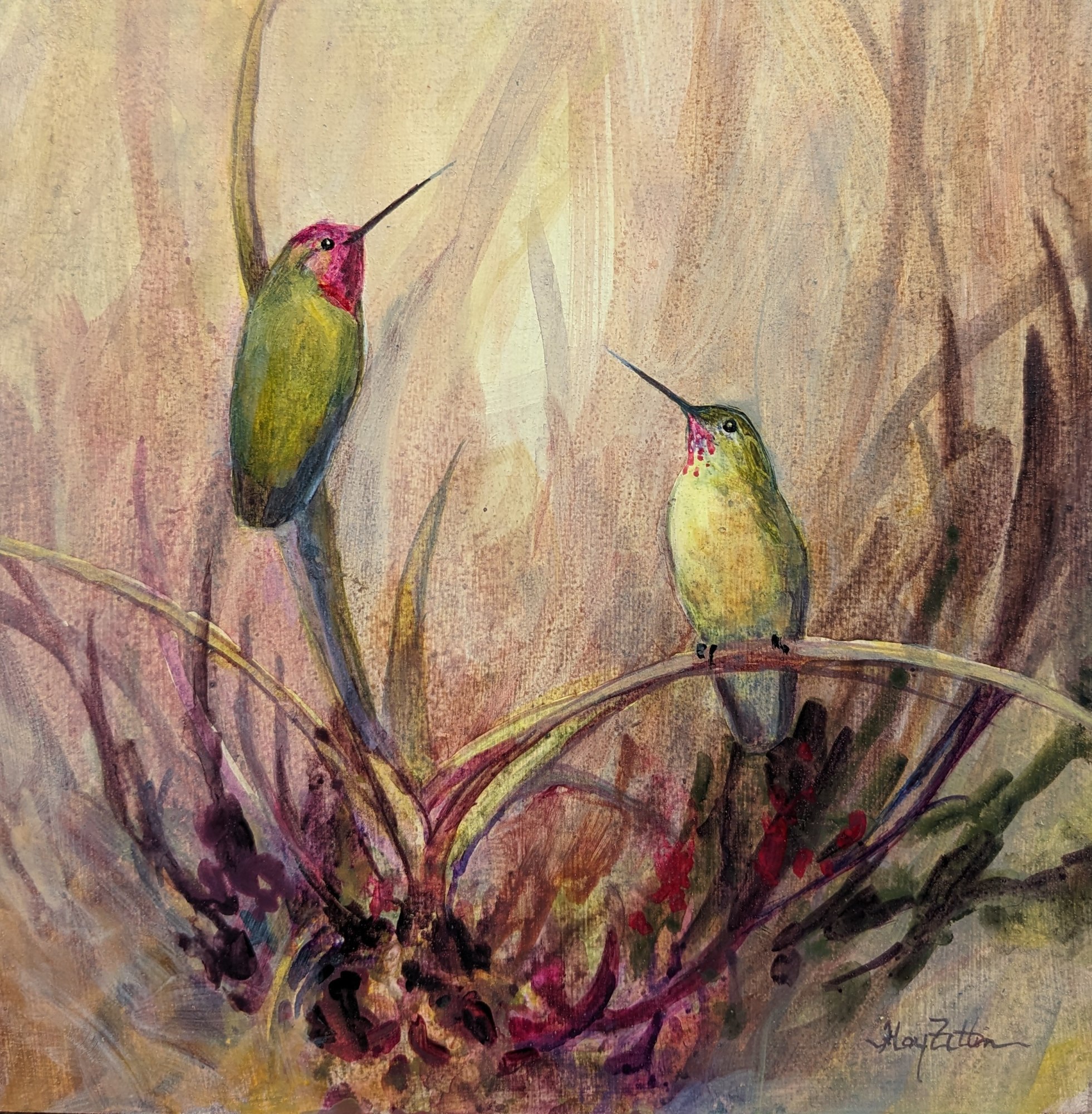 In Colombia we saw several hummingbirds perched on bromeliads. I liked playing with the red spikey leaves.