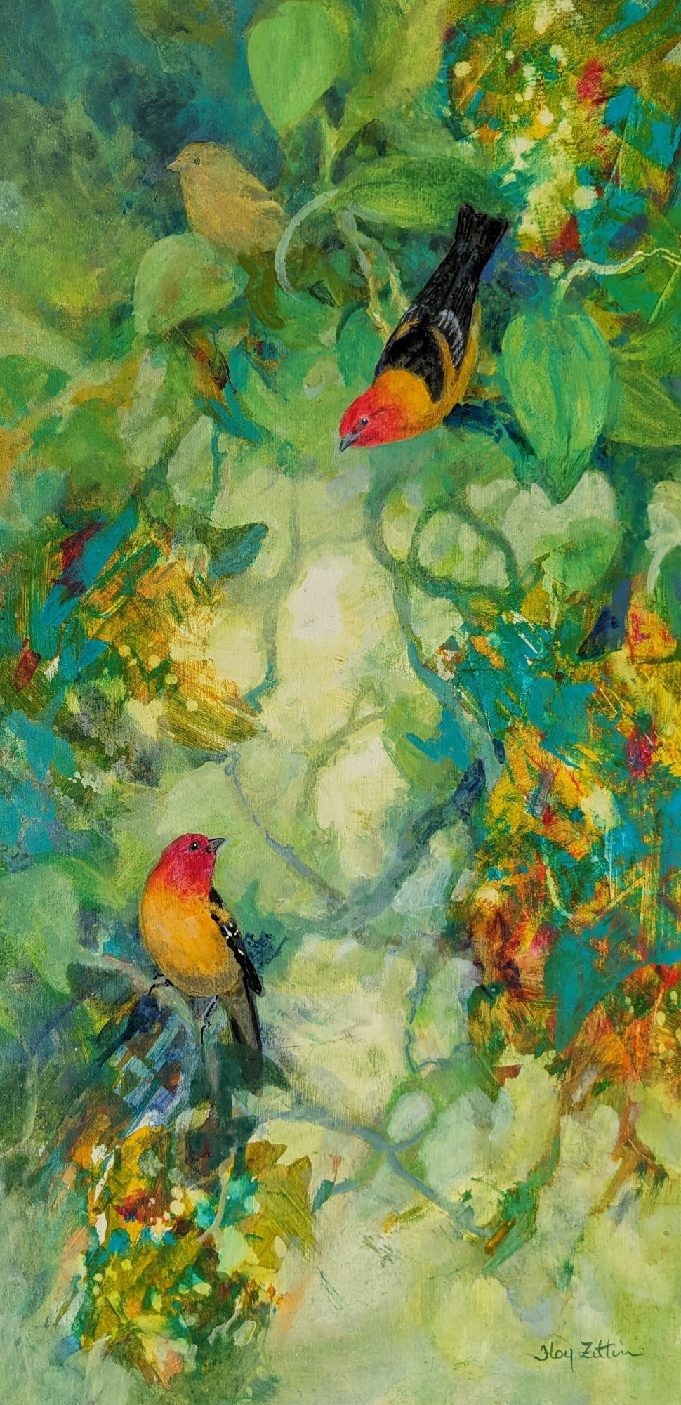 I look forward to the return of Western Tanagers from Central America each spring. The males are brilliantly colored but because they like to perch high in trees and deep in the foliage they are often hard to find.