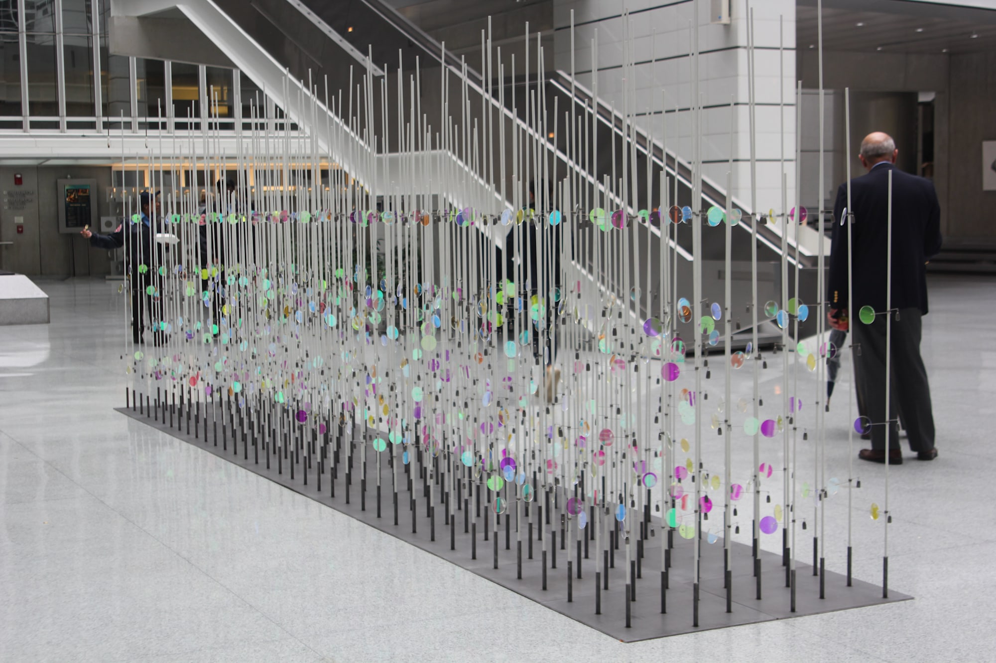 - Fiberglass rods, stainless steel, dichroic plexiglass.