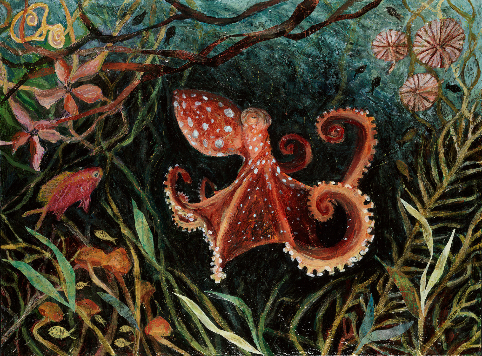 - Subject Matter: octopus, marine scape, underwater, plants, fish
