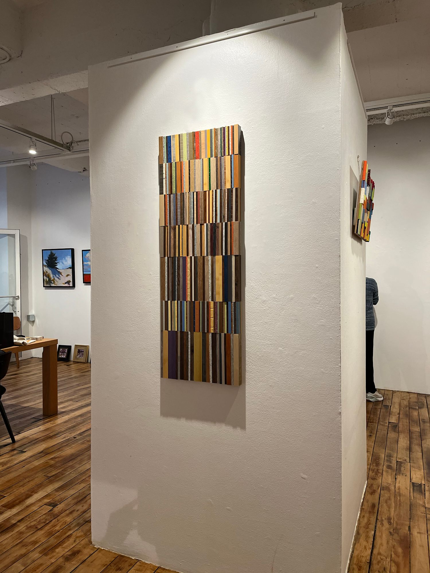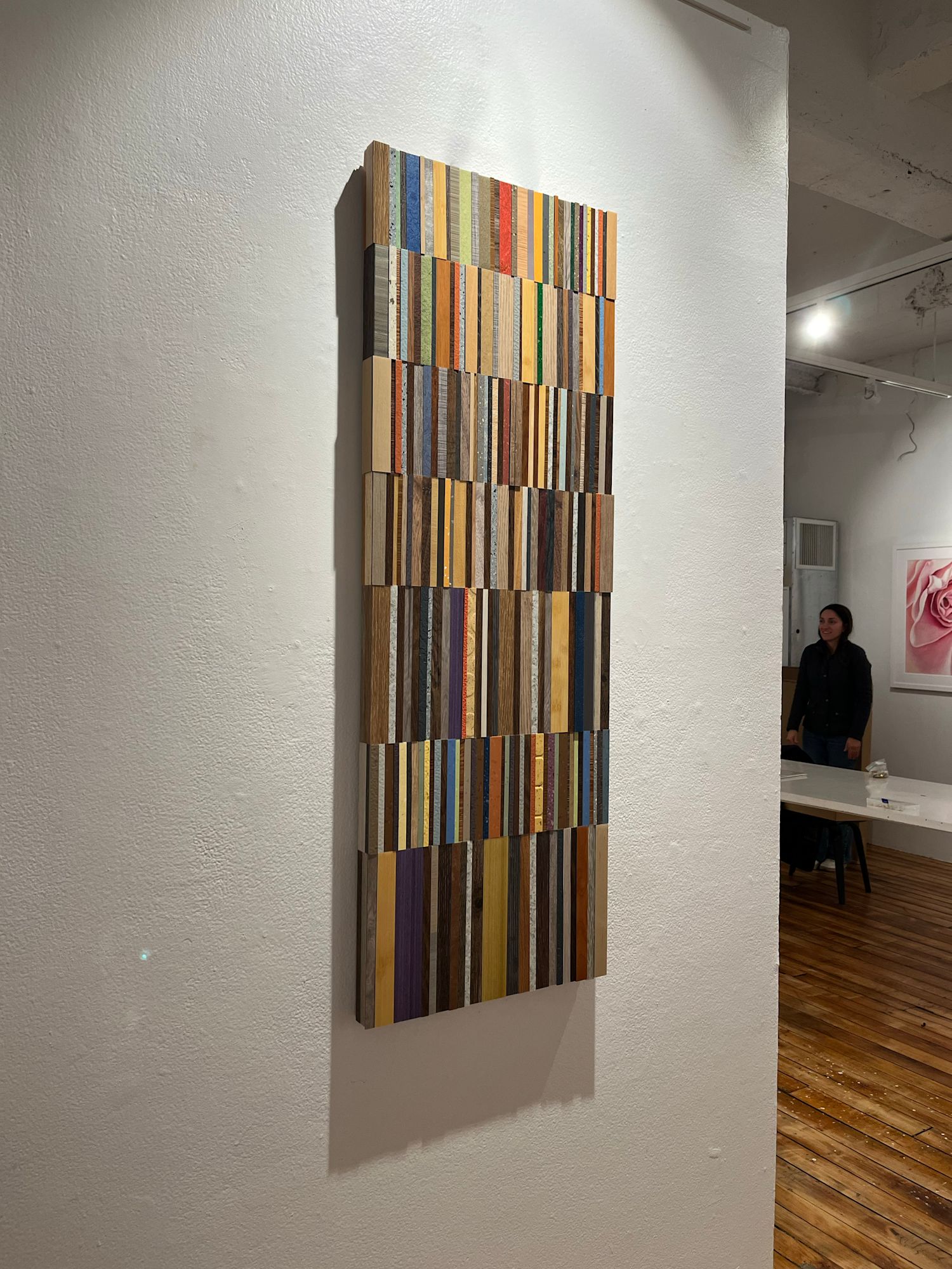 This piece, the second in a series of 10, inspiration from Alejandro Otero’s Color Ritmos while embracing my philosophy of reclamation. Created using discarded architectural samples, it transforms materials destined for landfills into vibrant expressions of light, color, and rhythm.