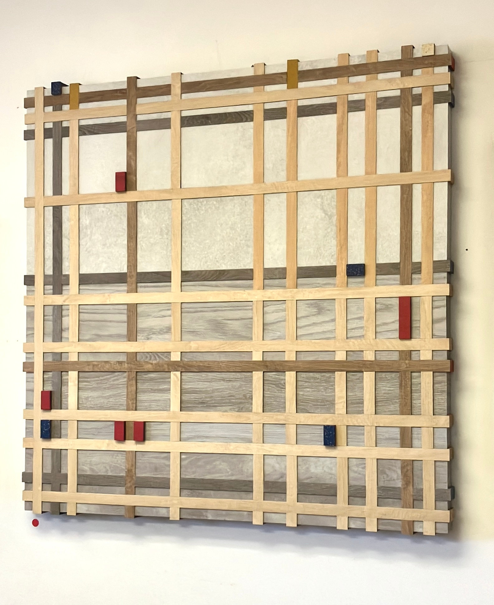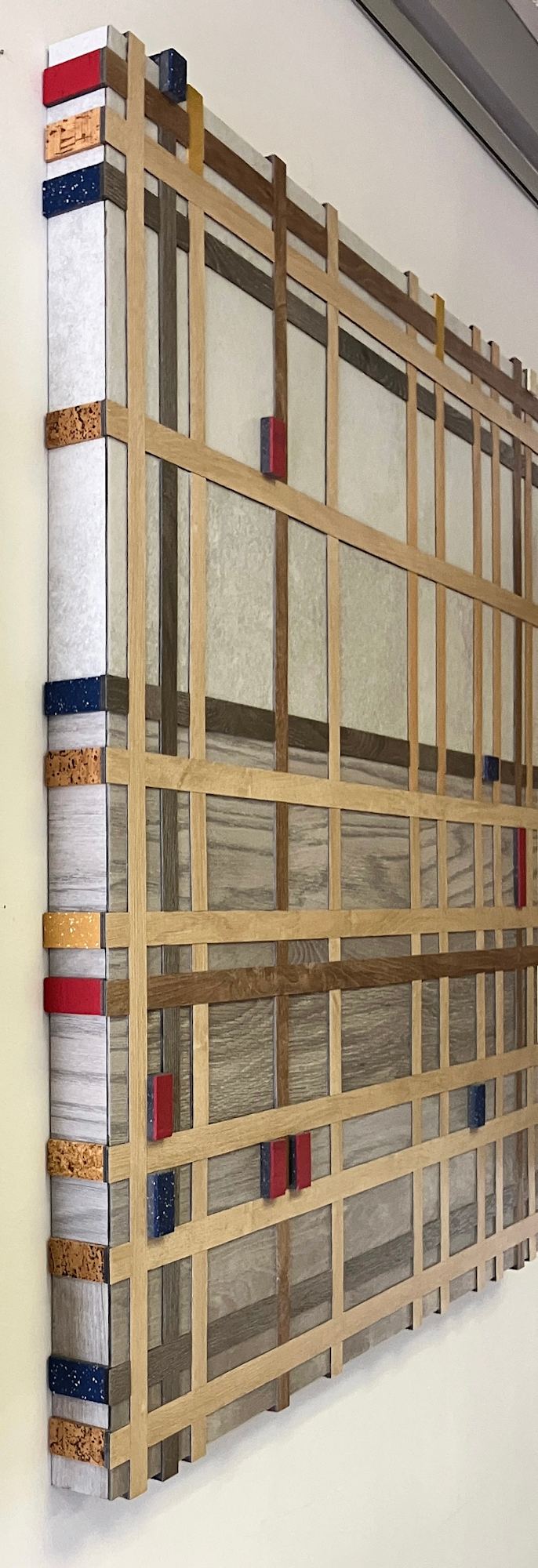 Drawing inspiration from Mondrian’s iconic use of lines and geometric forms, I have created a piece that not only reflects his aesthetic but also integrates a unique, contemporary reality. By incorporating repurposed architectural samples into the design, this artwork bridges the gap between past and future, tradition and innovation. The materials, once part of various structures, now come together to form a cohesive, modern composition that resonates with the timeless elegance of Mondrian’s work.