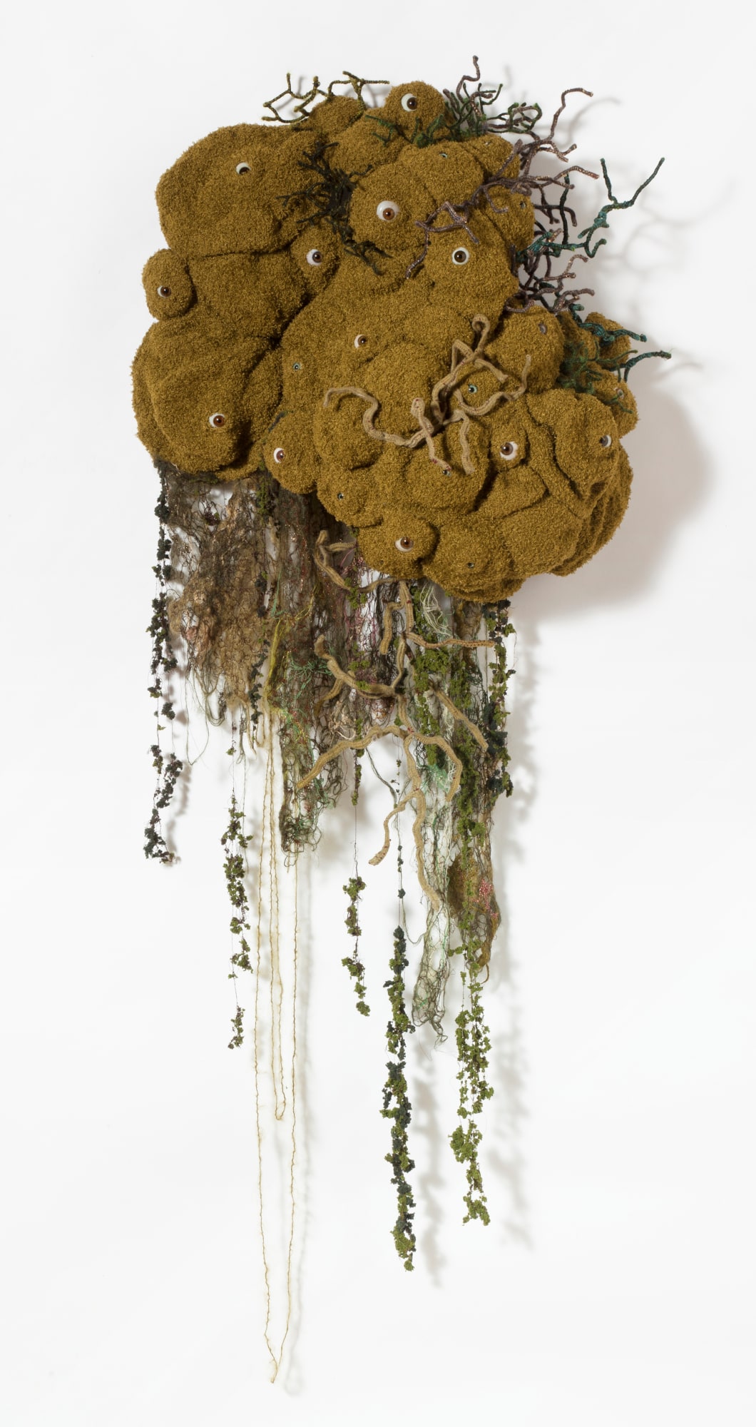 crochet fibers, wire, human prosthetic glass eyes