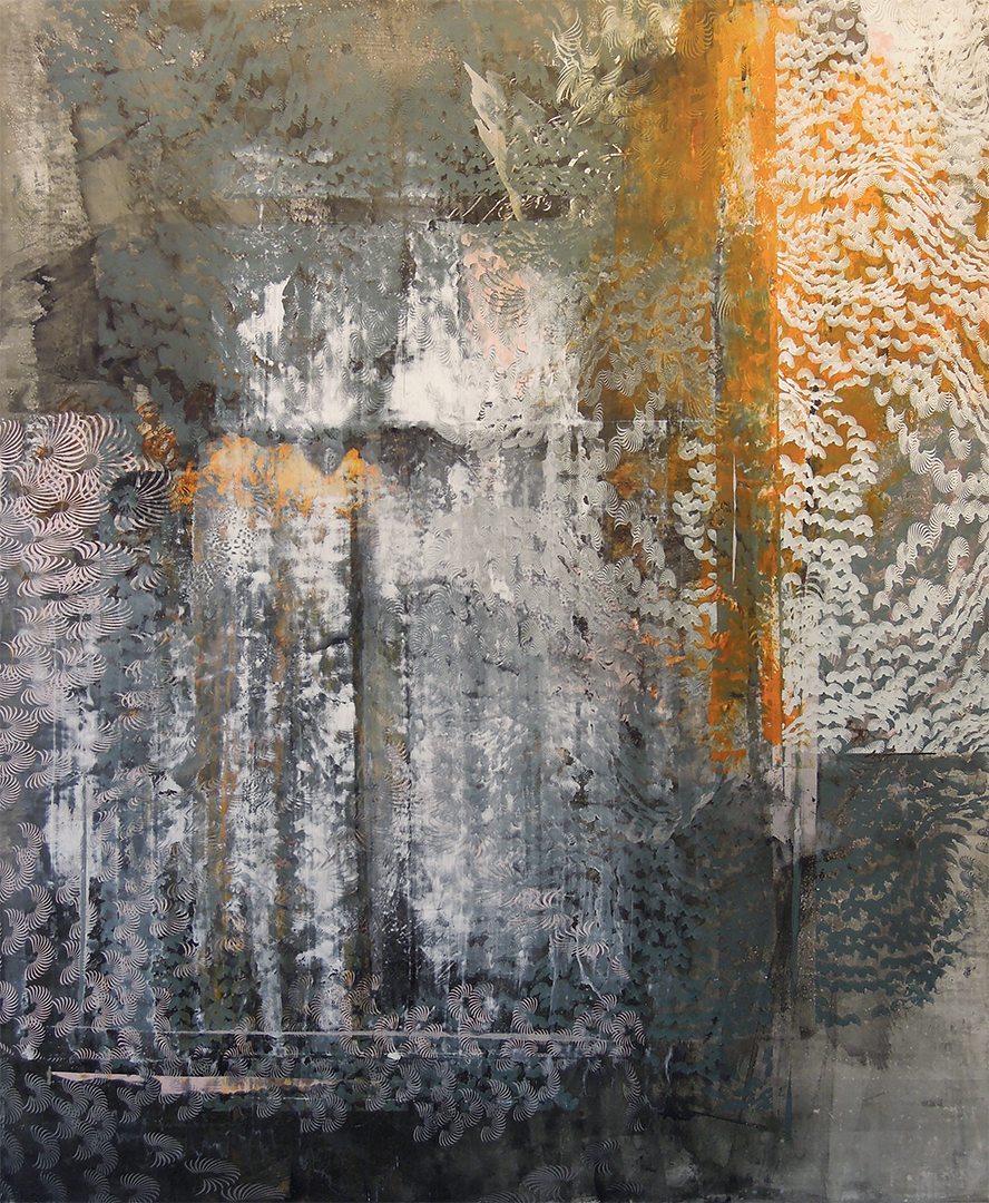 Screen printed oil and wax on linen over panel