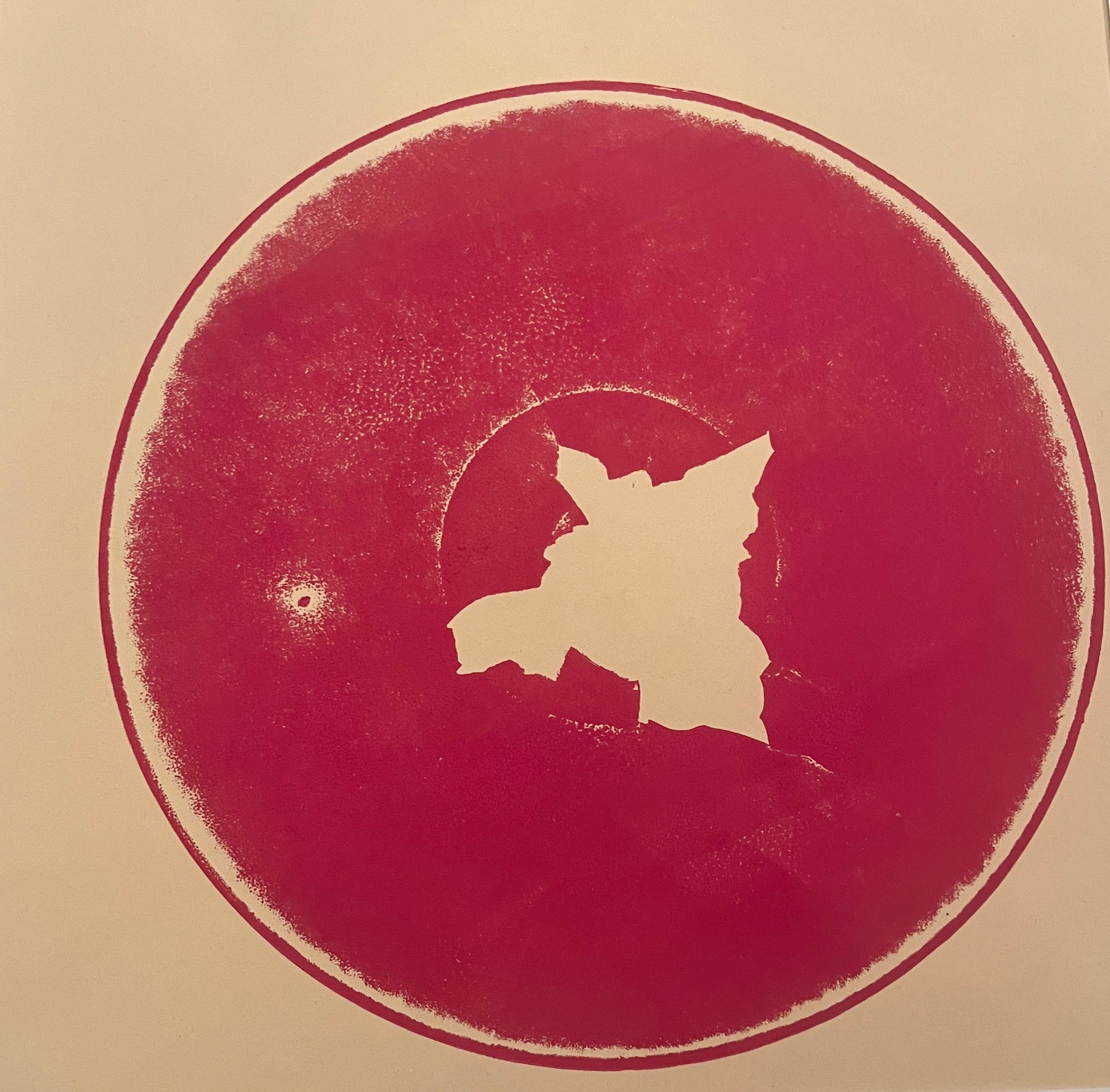 a part of a series of broken vinyl record monotypes