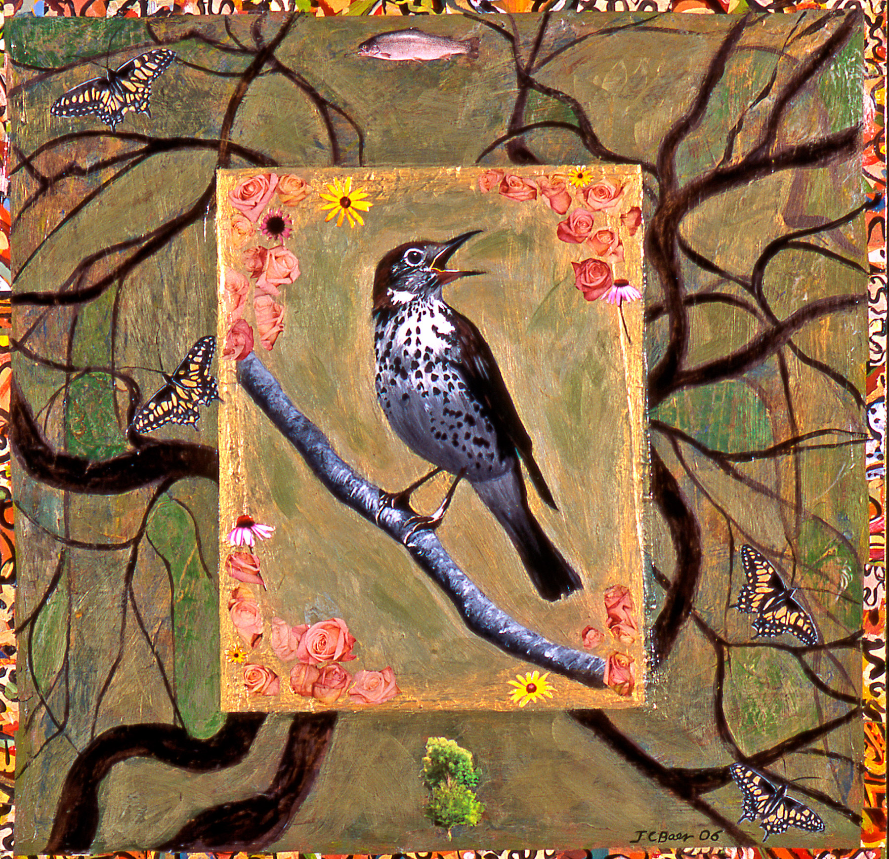 Wood Thrush II, 2006, 24” x 24”, gouache and acrylic on wood panel, $1500
