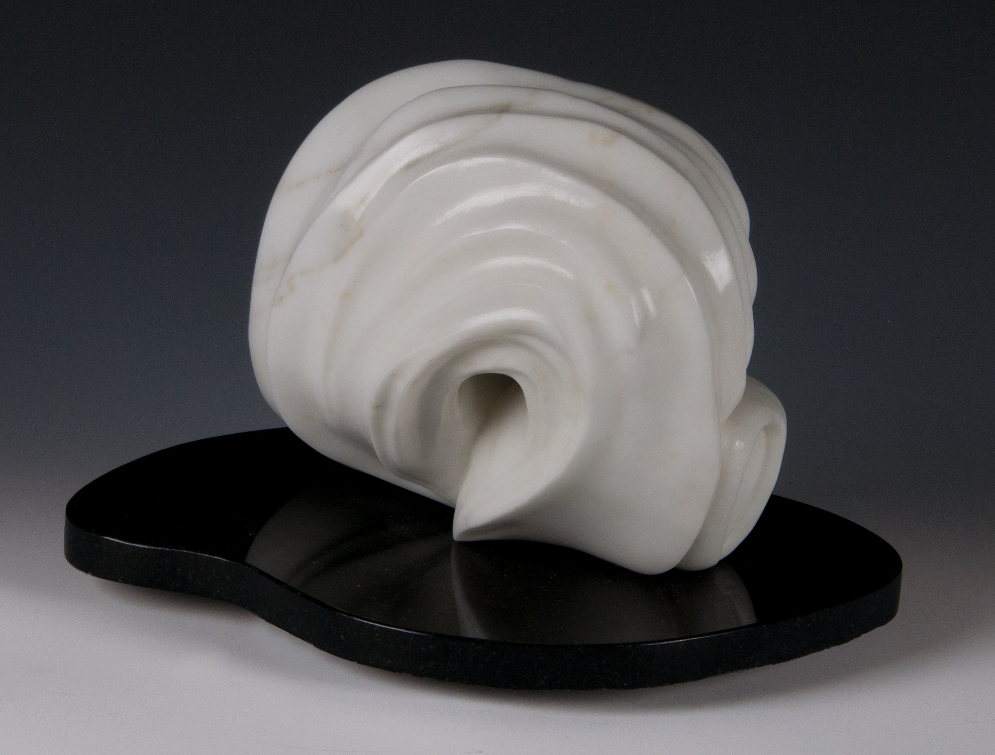 This is another stone we brought back from our Italy visit in 1999. The block sat on my shelf, floor, counter, where ever there was space. I just couldn't start chipping without a vision for this precious stone. So I waited and waited and waited. Finally, one day in the summer of 2015 walking past it, I saw it. This carving was sheer pleasure and joy. I love petting it! Turntable base.