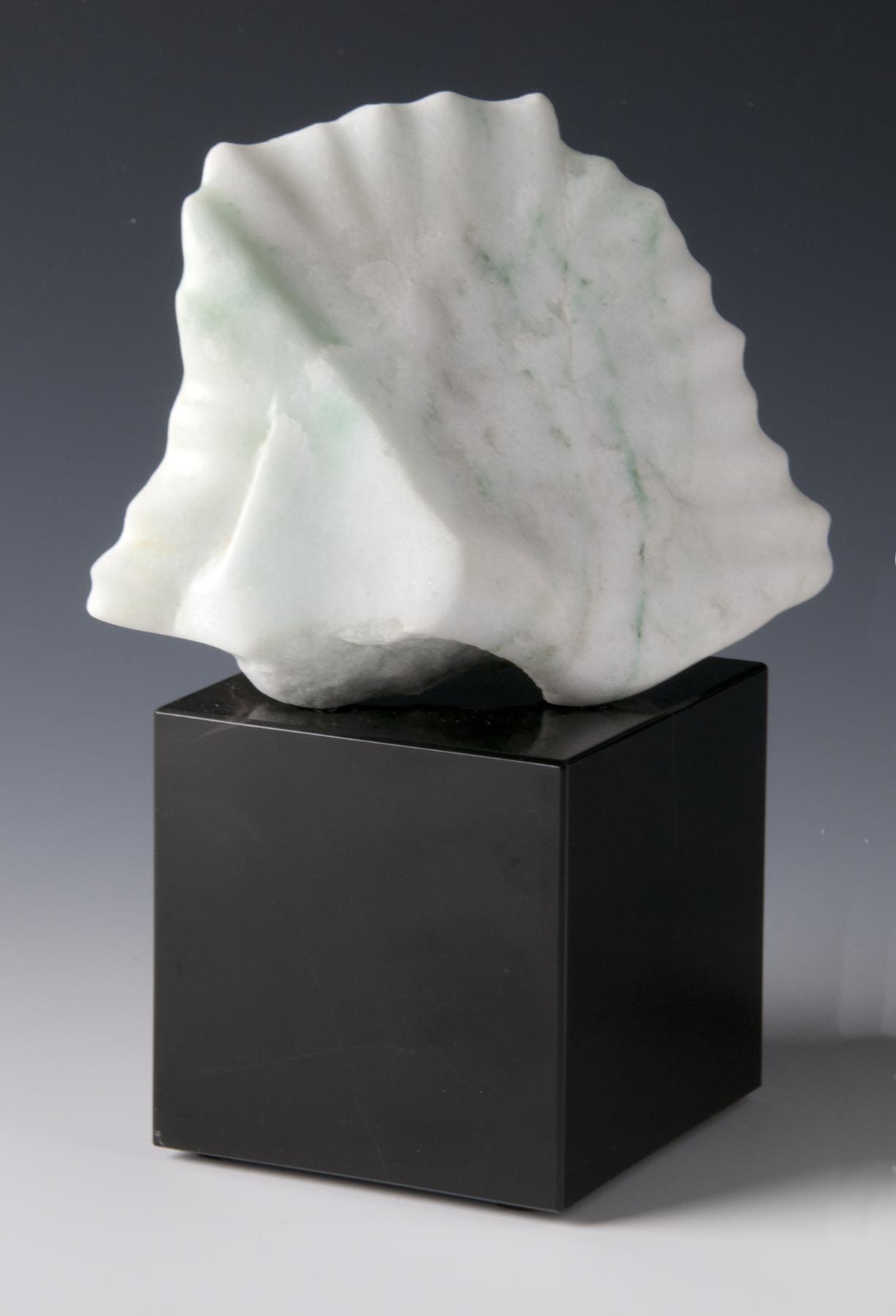 Colorado Yule Marble with unique green veining. My inspiration for this piece was the stone itself. I was rummaging through my "scrap" box, found this stone, and said, "hmm...this is good!" When possible, I like to keep the natural raw cut of the stone.