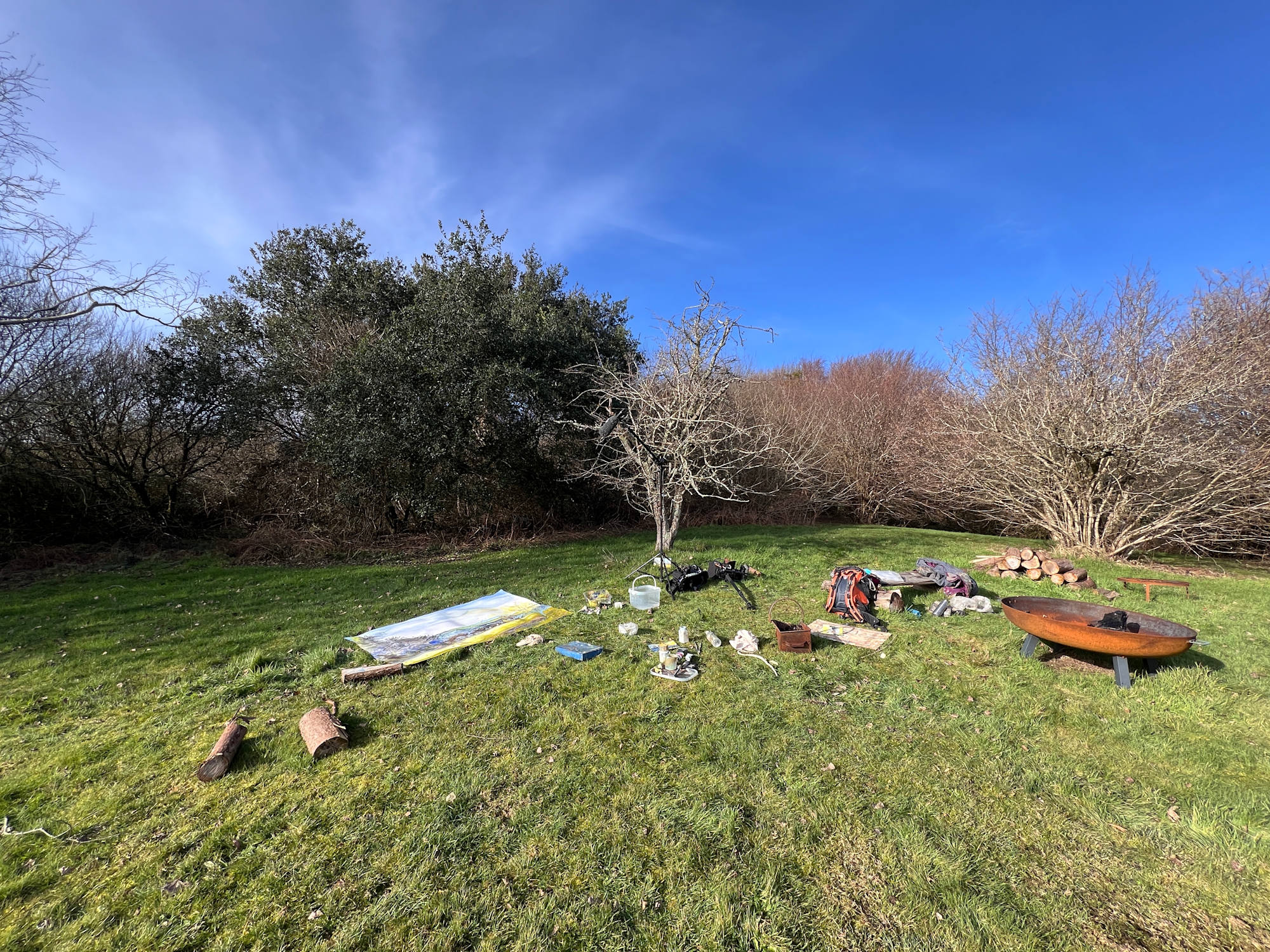 A site-responsive plein air practice. Paintings become receptacles of an experience in the landscape. Site materials gathered are integrated with water media.