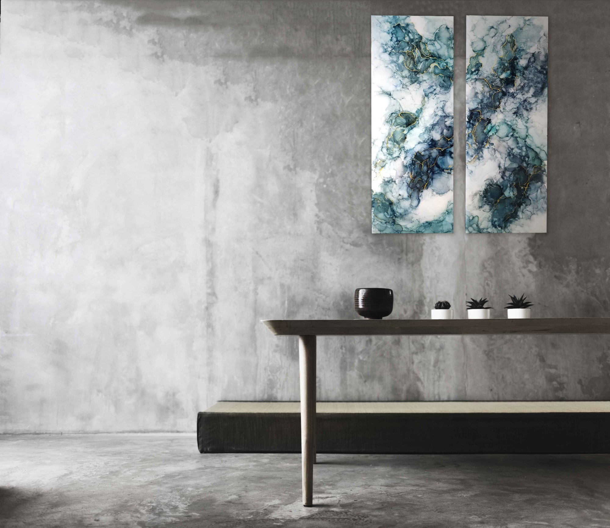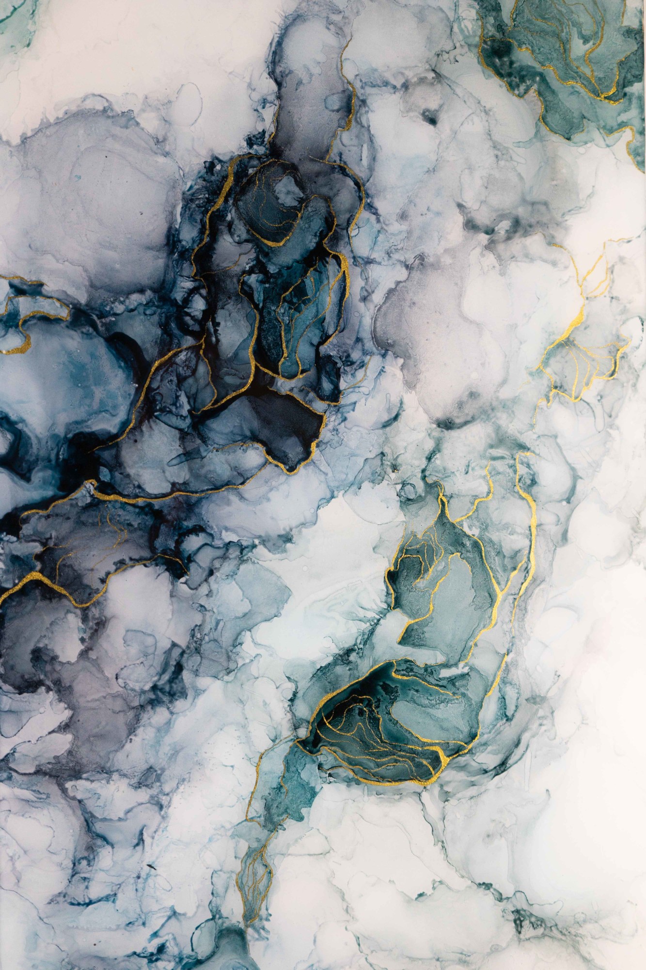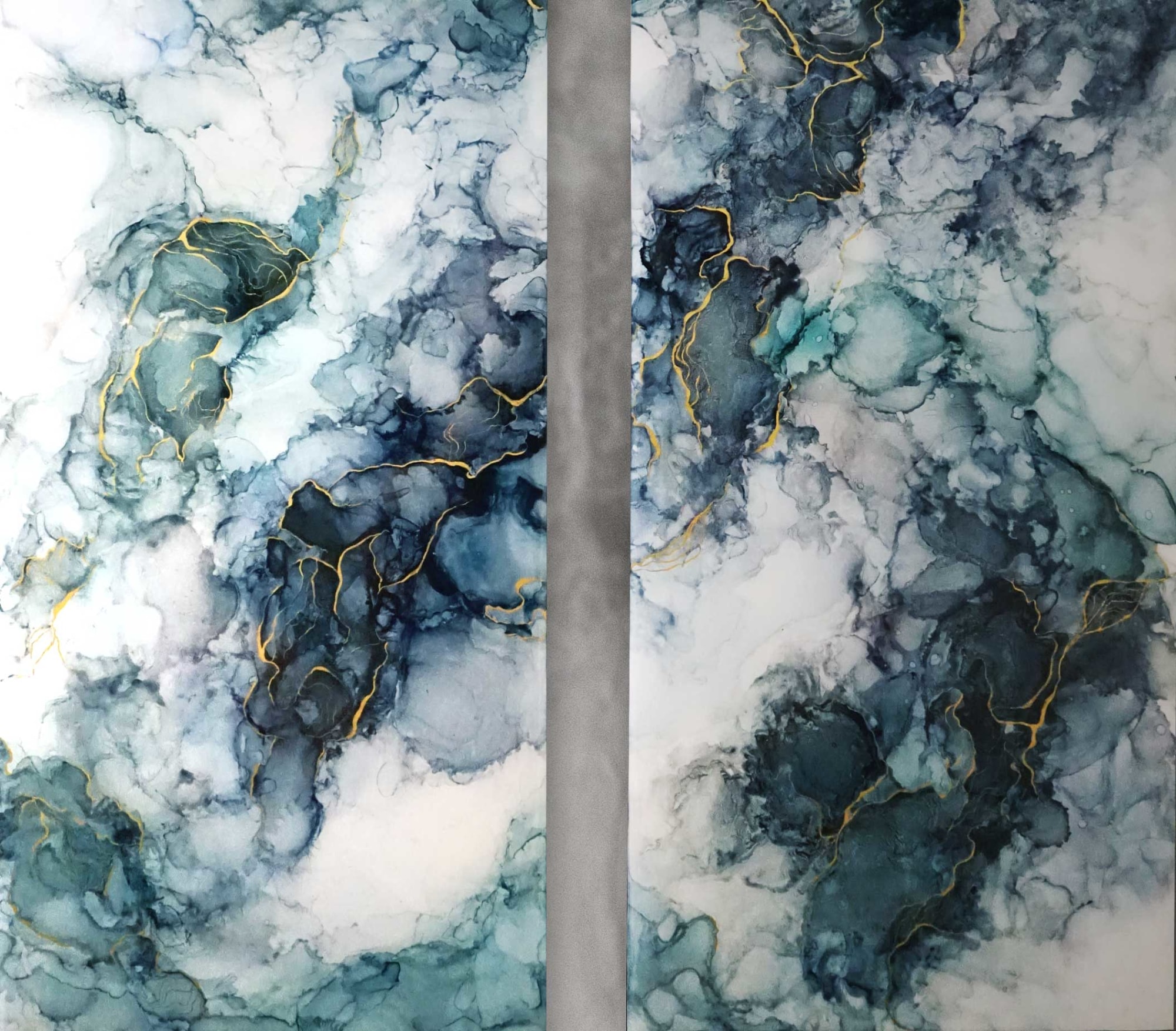 alcohol ink, calligraphy ink, yupo, resin on wood panel