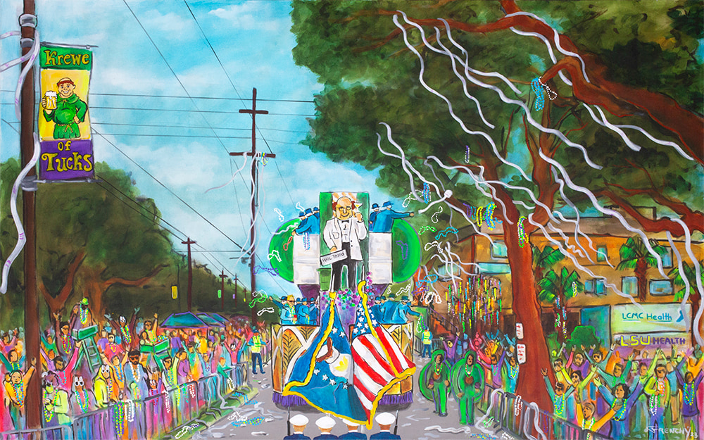 This painting was produced live during the 2023 Krewe of Tucks Parade in New Orleans, LA.