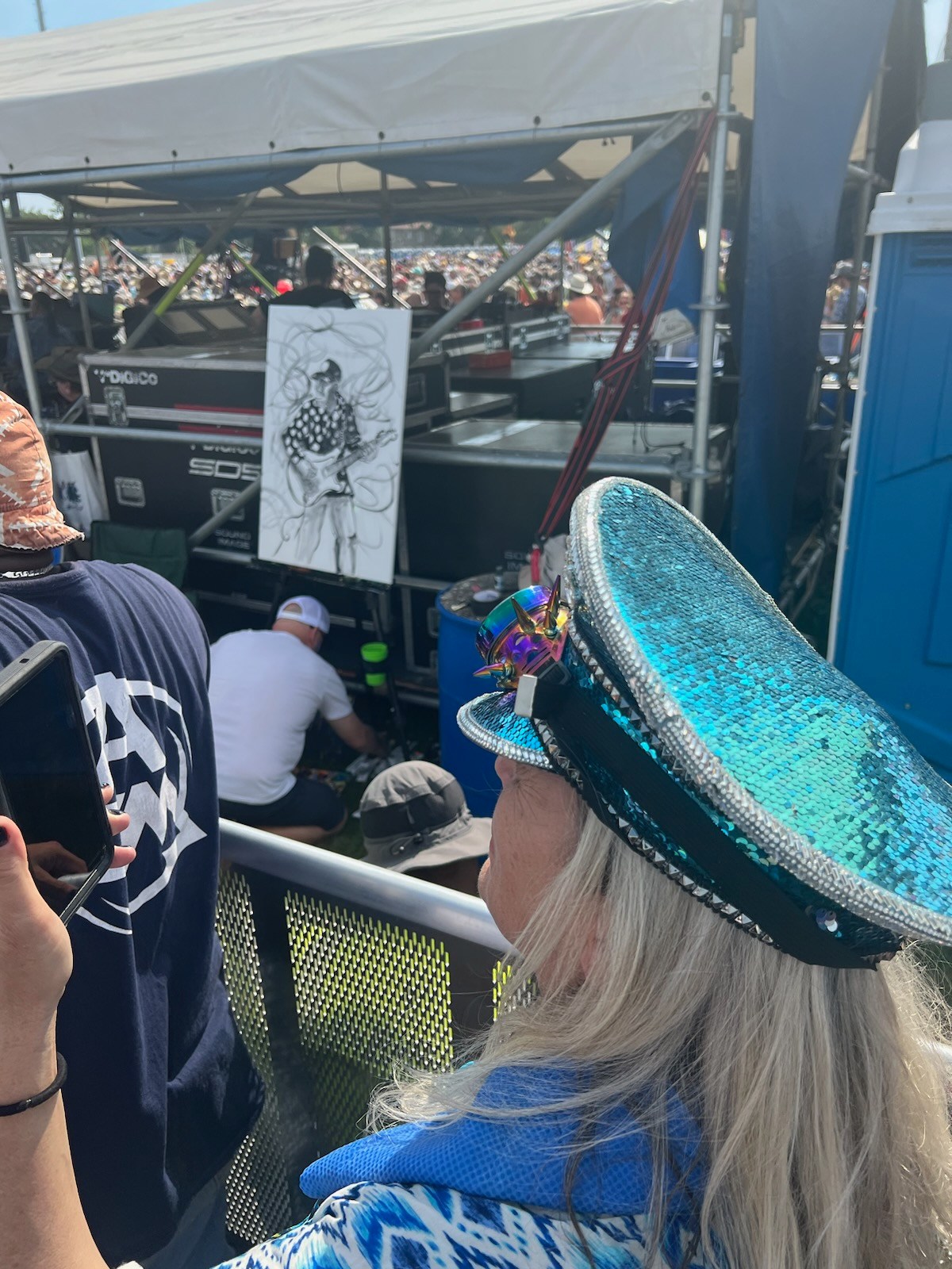 One unique aspect of Frenchy's live painting process is that at one point during the show, he flipped the canvas upside down and continued working on the painting. This incredible feat only serves to highlight his immense skill and creativity.
