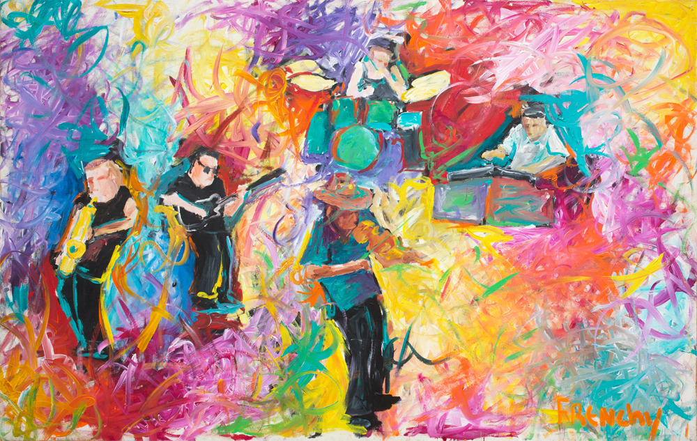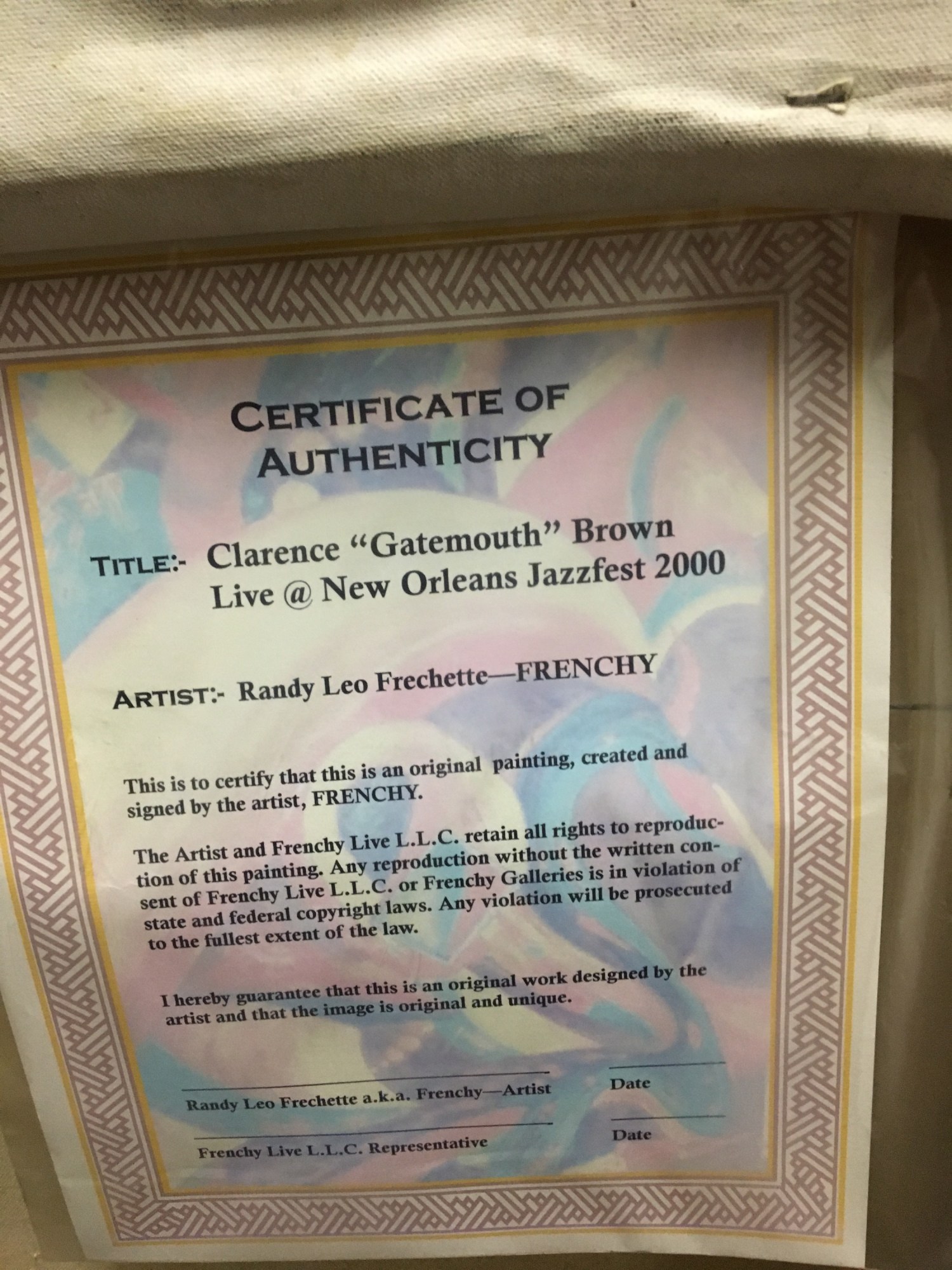 This painting was produced at the 2000 New Orleans Jazz and Heritage Festival.