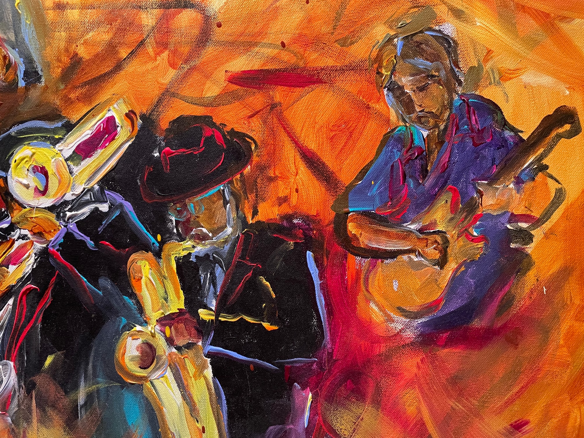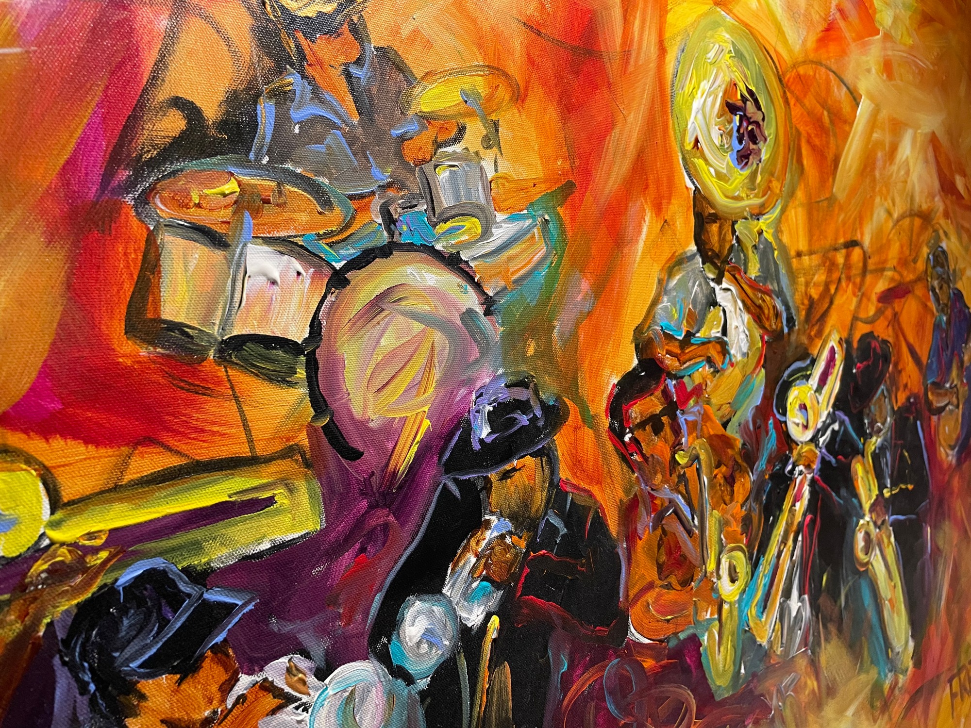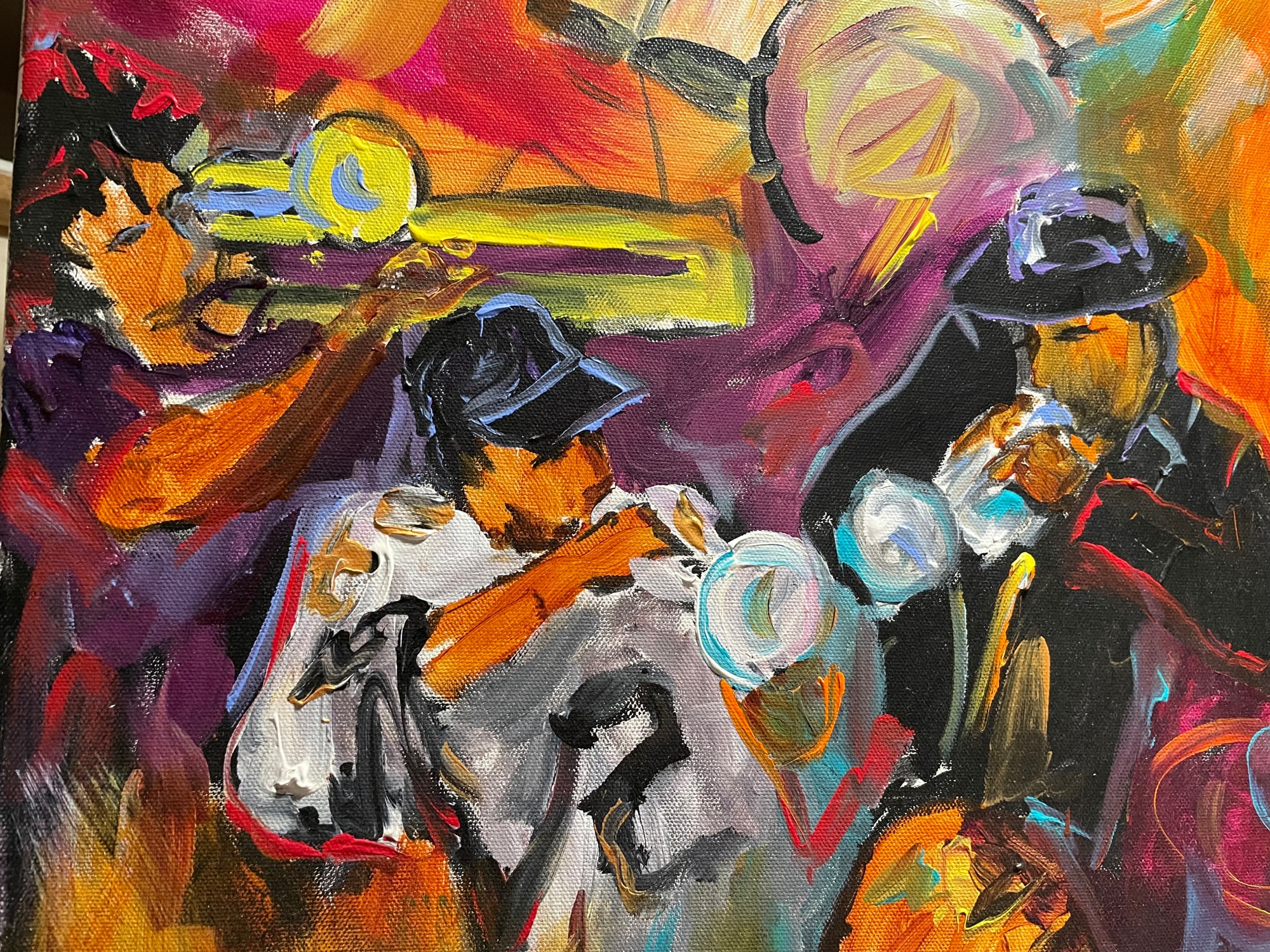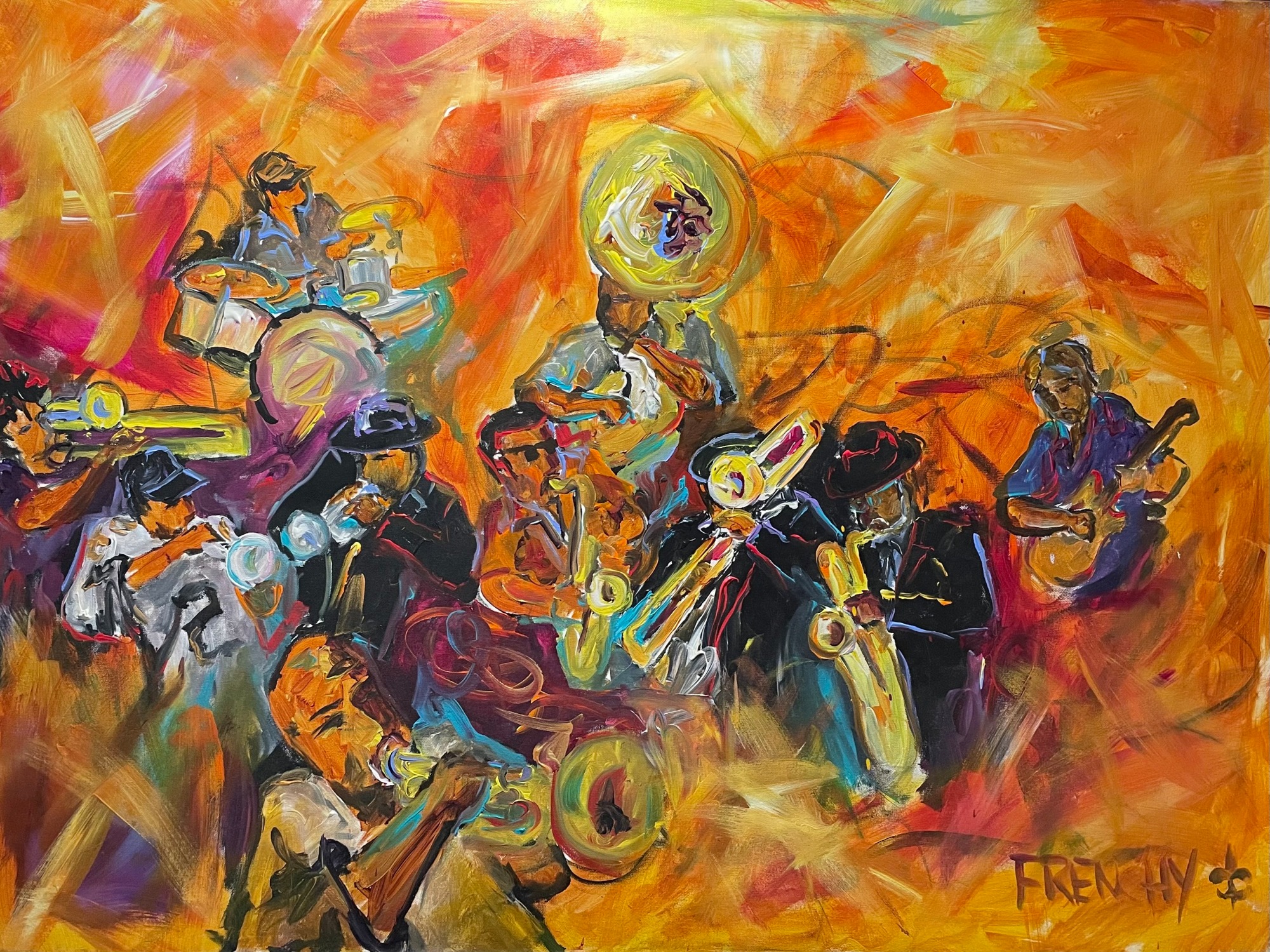 This painting of the Dirty Dozen Brass Band was painted by Frenchy live at Tipitina's in 2005