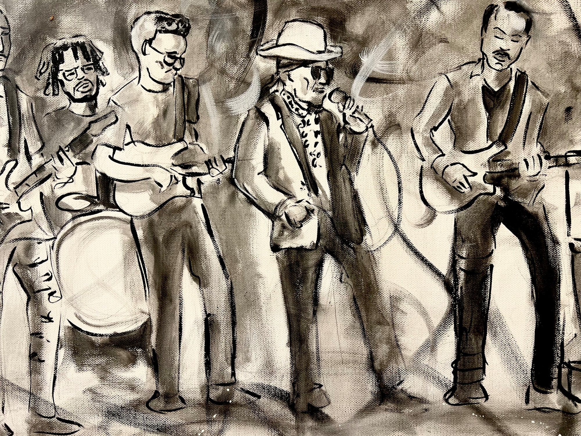 A striking Black & White portrait of the New Orleans funk sensation, Dumpstaphunk, with the legendary Cyril Neville from The Meters taking the center stage, is a testament to the vibrant musical heritage of the city. Created during the Blue Note Napa's Summer Sessions on September 23rd, 2023, this dynamic 24x36 canvas captures the essence of funk and soul that defines the band. With deft strokes and a monochromatic palette, Frenchy brings to life the infectious rhythm and energy that flow through the music of Dumpstaphunk, celebrating a fusion of talent and tradition that has come to define New Orleans' musical legacy.