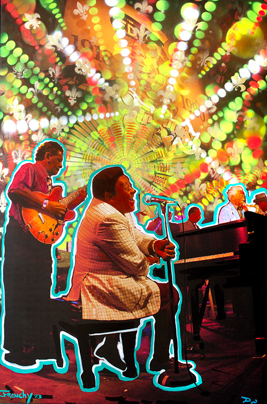 This magnificent painting of Fats Domino is yet another dazzling collaboration between Frenchy, the celebrated artist, and Dino Perrucci, the renowned photographer. Using a photograph as the foundation, Frenchy has added his signature style and flair to create a truly unique work of art. The painting captures the essence of Fats Domino's music and persona, showcasing his vibrant energy and larger-than-life personality. With its bold use of color and dynamic brushstrokes, this painting is a true masterpiece that celebrates the enduring legacy of this iconic musician. Measuring at 24" x 36", this collaboration is a must-have for any art collector or music enthusiast who wants to own a piece of history and be transported to the world of Fats Domino. With Frenchy and Dino's masterful touch, this painting is a testament to the power and beauty of artistic collaboration.