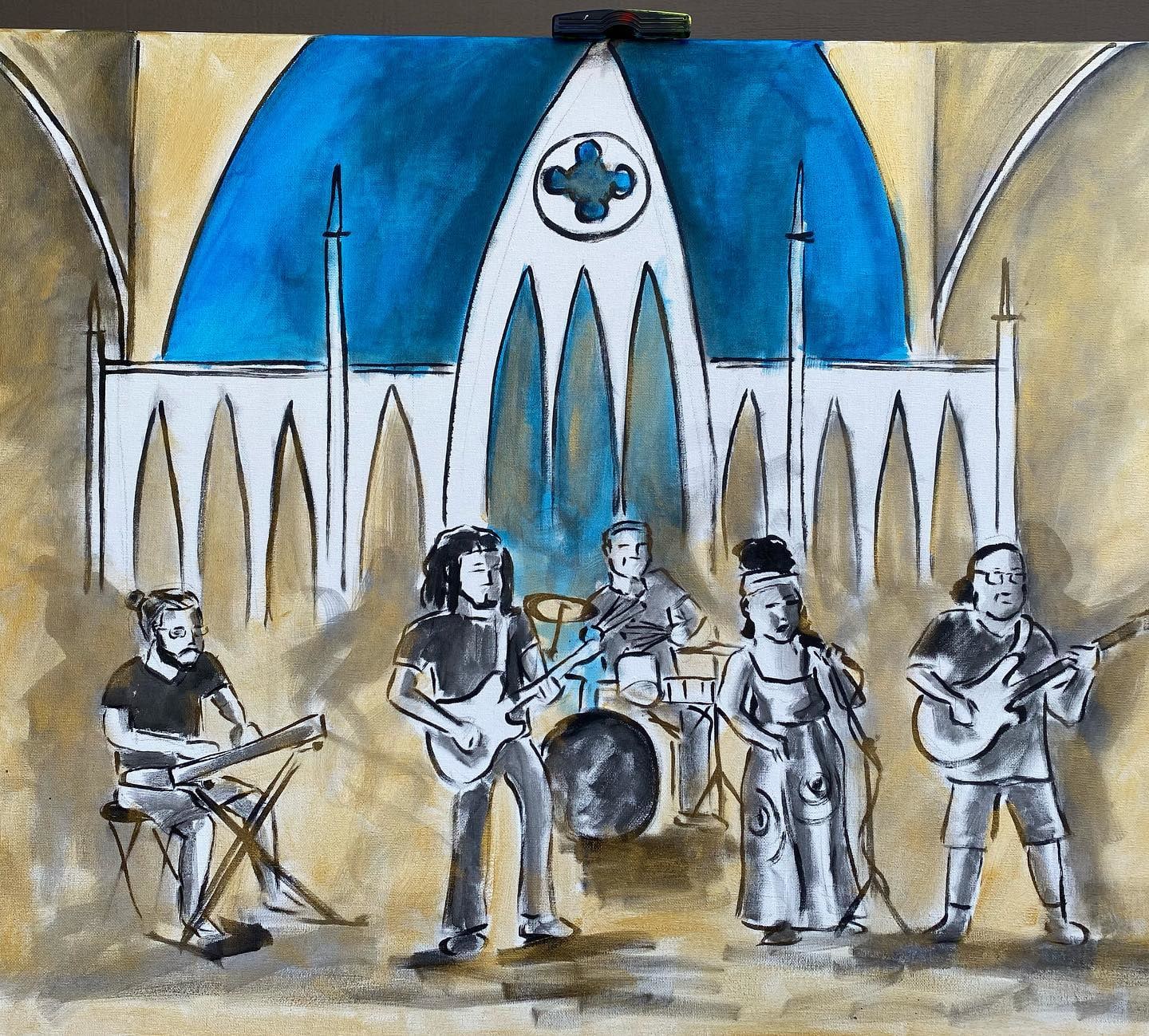 This painting of the Funky Uncle All-Stars was done by Frenchy over Zoom while evacuated for Hurricane Ida on September 1st, 2021.