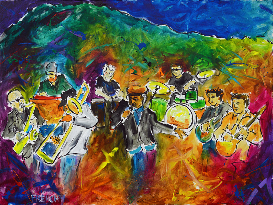 This painting was produced live at the 2013 Telluride Jazz Festival w/special guest Mike Dillon.