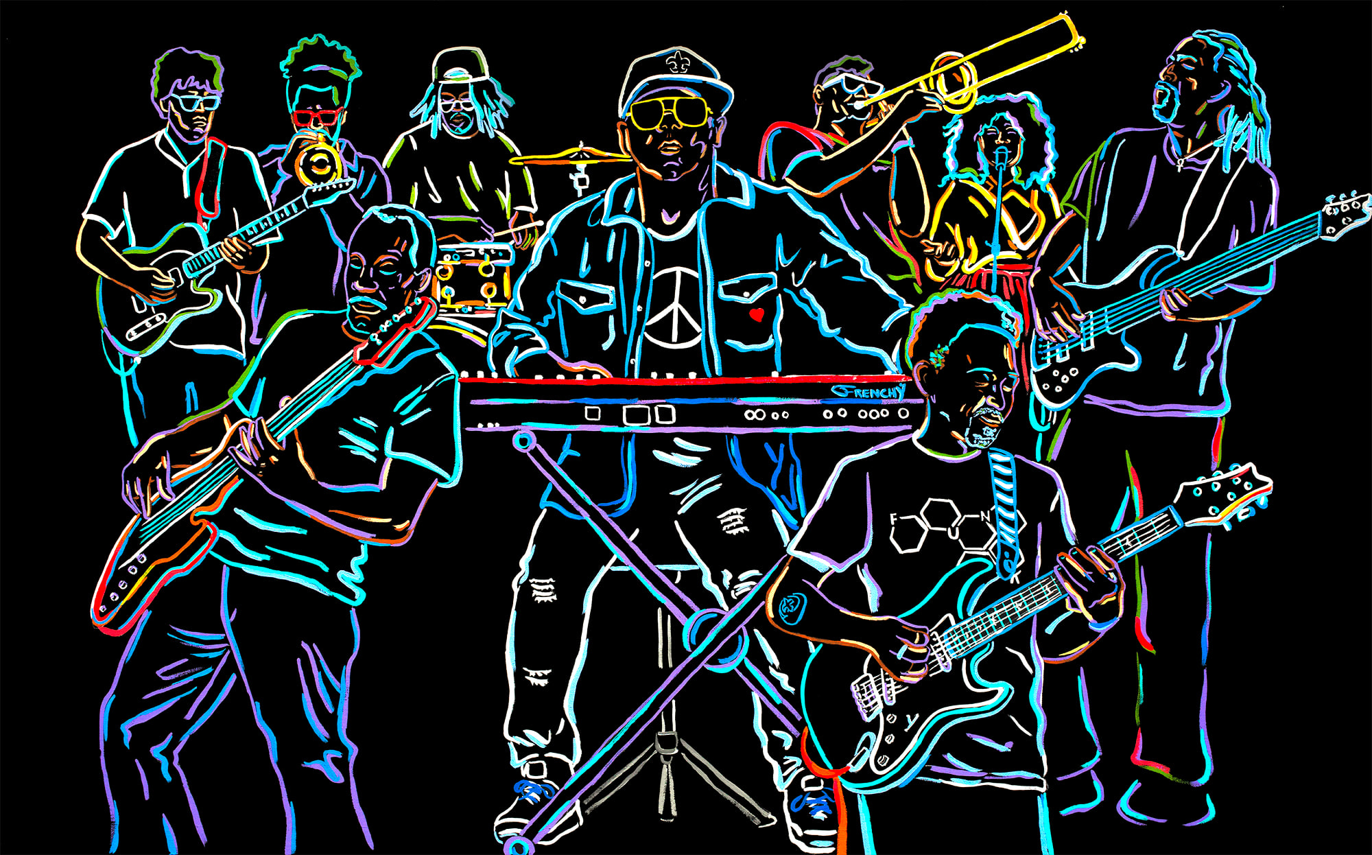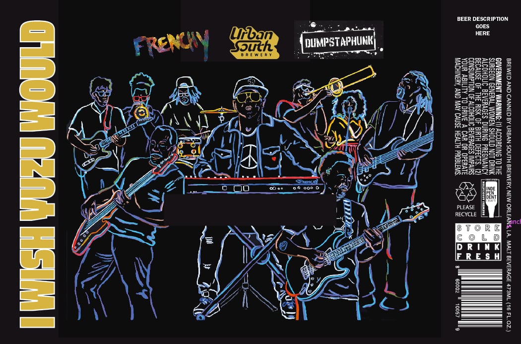 Created in Frenchy’s Oak Street Studio, this vibrant line art piece celebrates the bold collaboration between Urban South Brewery and funk legends Dumpstaphunk. The artwork was featured as the label for the beer named after the band’s track, "I Wish Yuzu Would." Bold lines, bold sound, captured in true Frenchy style.