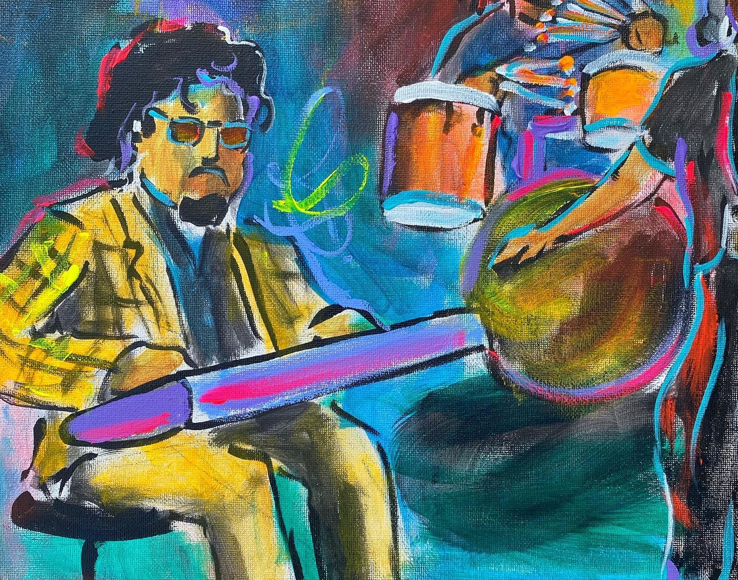 This painting was created by Frenchy virtually via Zoom while evacuated for Hurricane Ida on September 8th, 2021 as part of the Funky Uncle Live series.