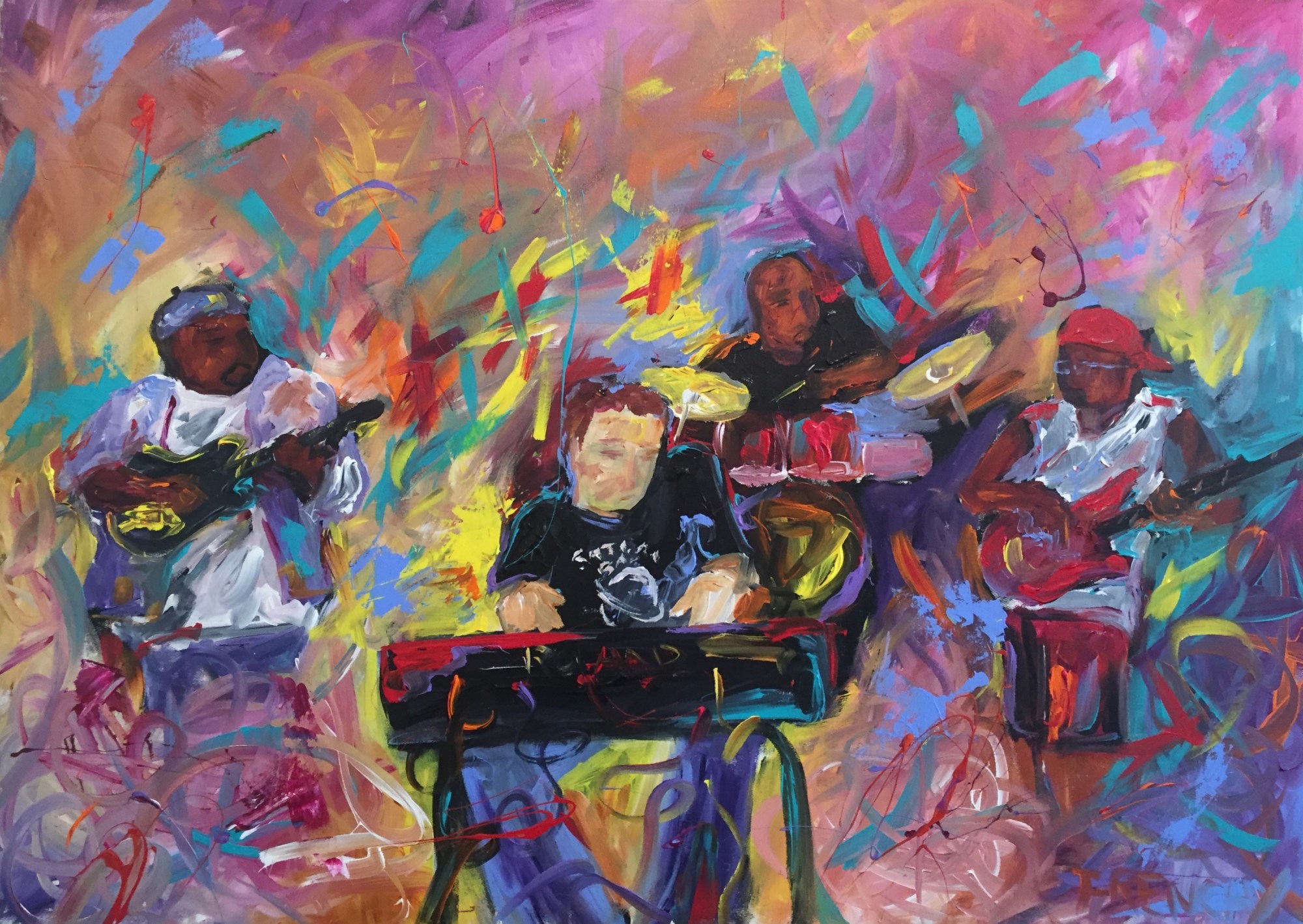 This painting was produced live in 2003 at the second annual Bonnaroo Music & Arts Festival held in Manchester, TN.