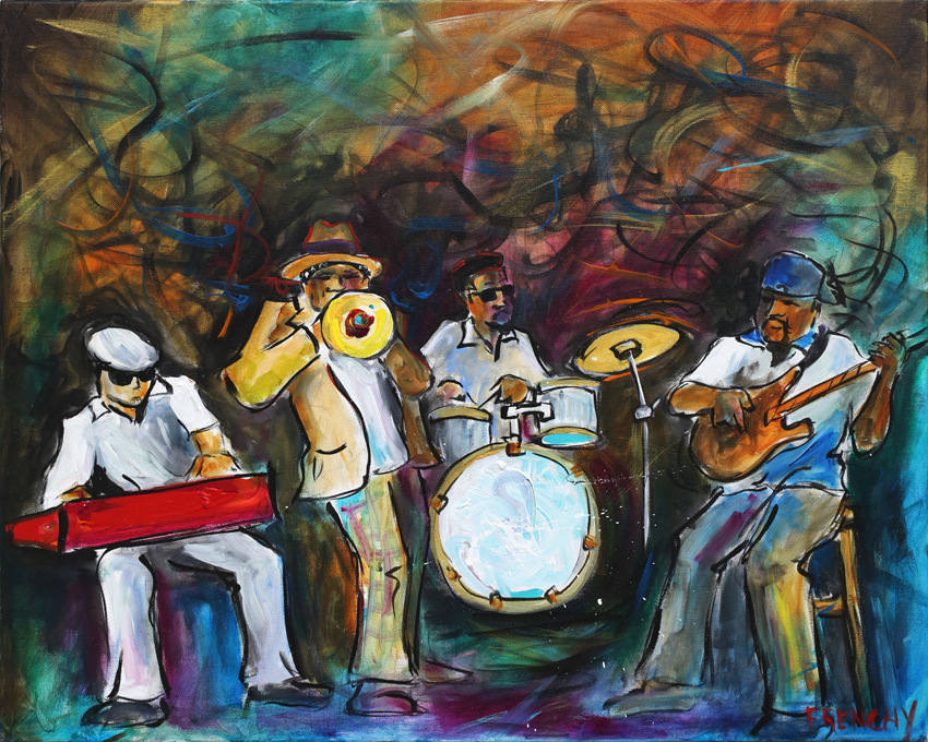 This painting of Kermit Ruffins & the BBQ Swingers was produced live at the 2014 French Quarter Festival.
