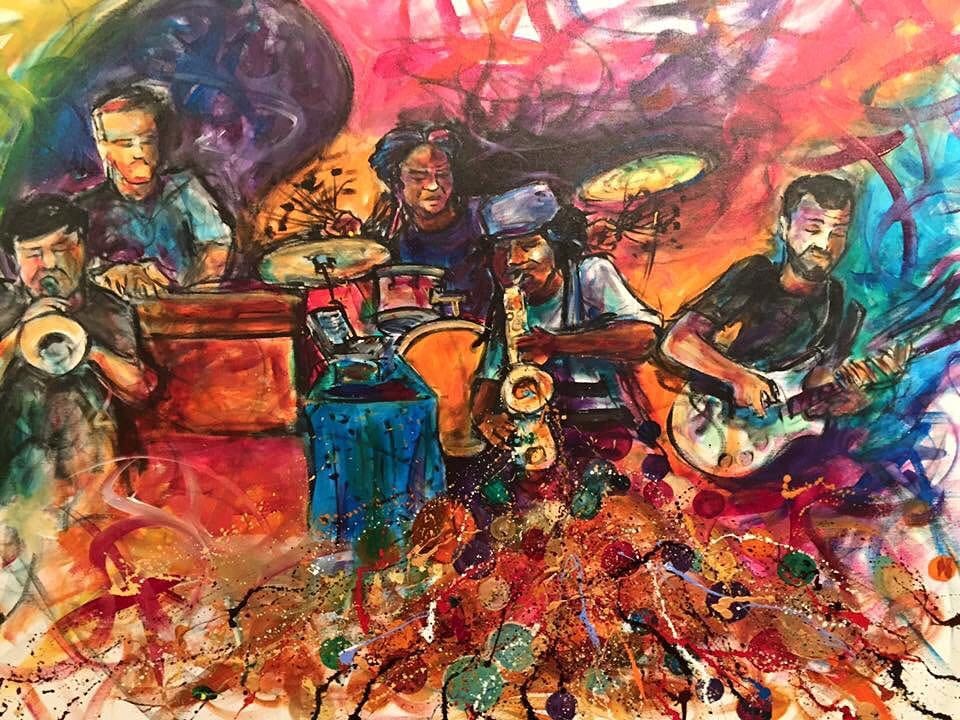 This painting featuring Khris Royal & Dark Matter, Christian Bradford & John Michael Bradford was produced live at the Maple Leaf on Christmas Eve.