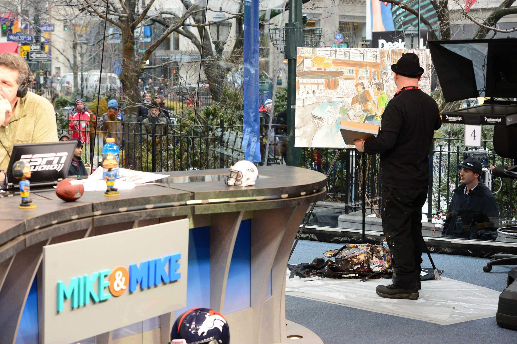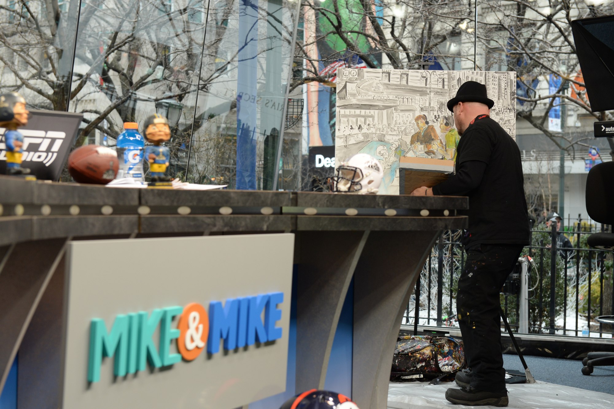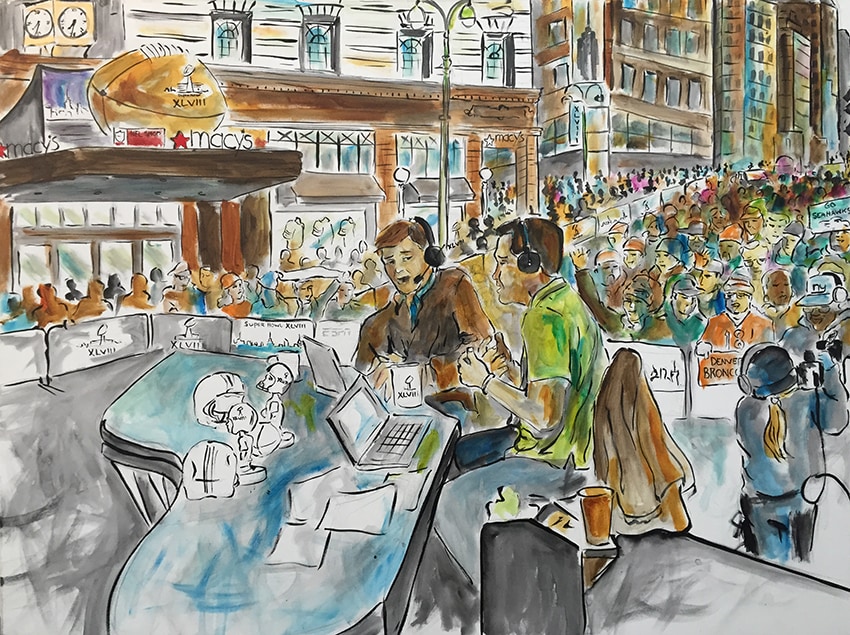 This painting was produced lived on the set of Mike n Mike during Super Bowl XLVIII week in NYC.