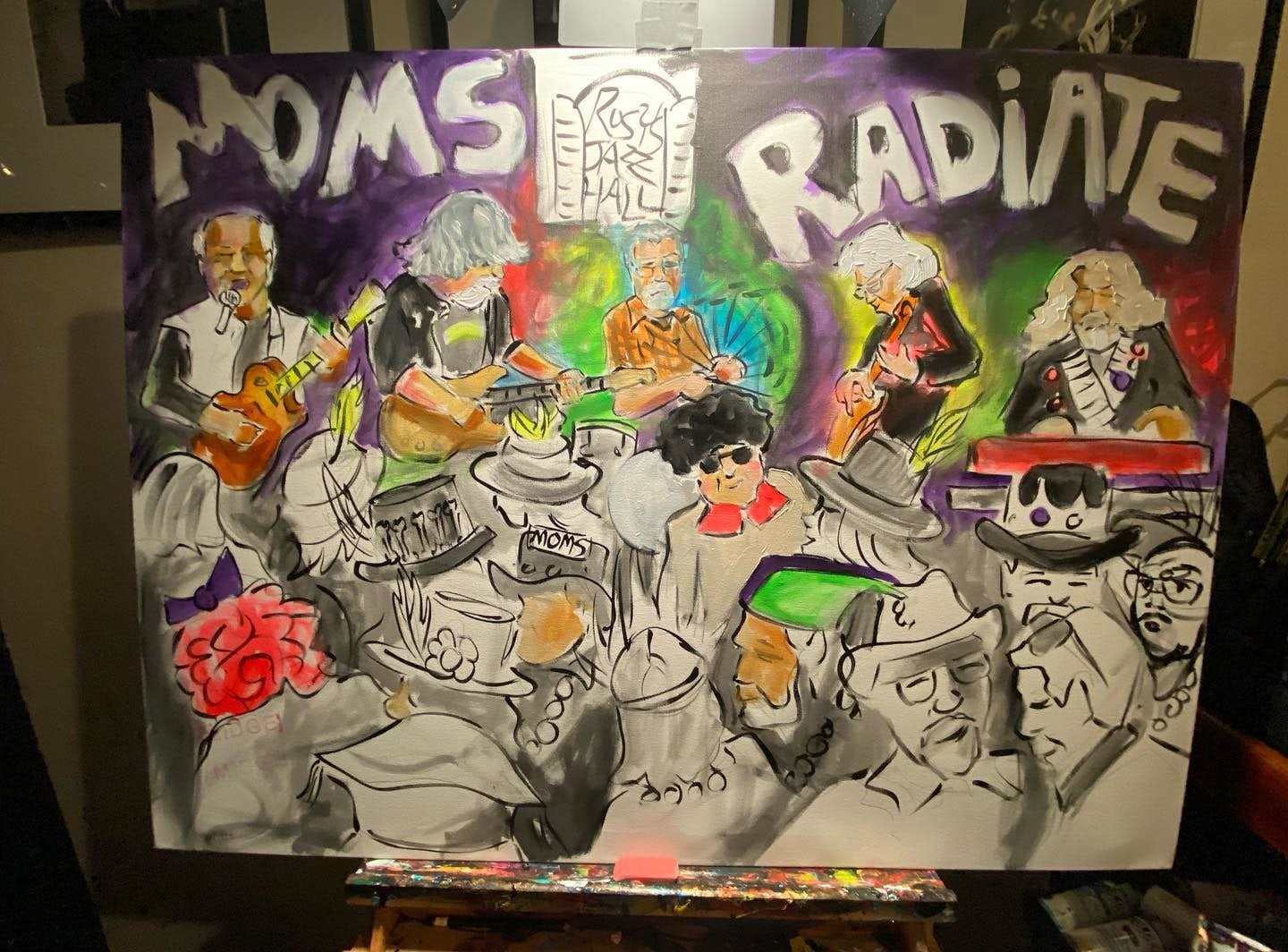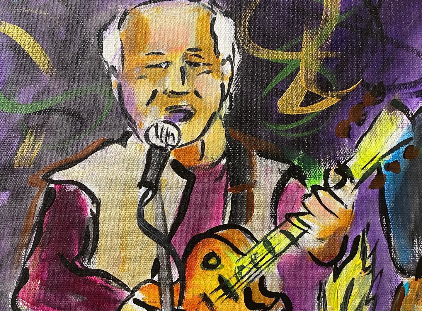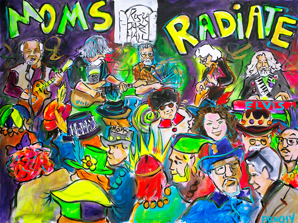 This painting of Raw Oyster Cult was painted by Frenchy on February 18th, 2022 for the MOMs Ball before Mardi Gras at Rosy's Jazz Hall.