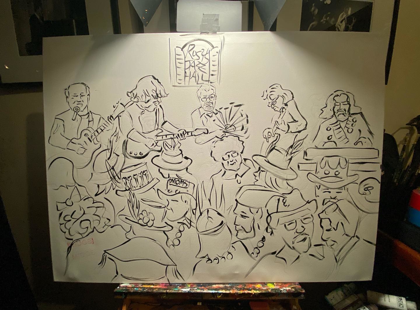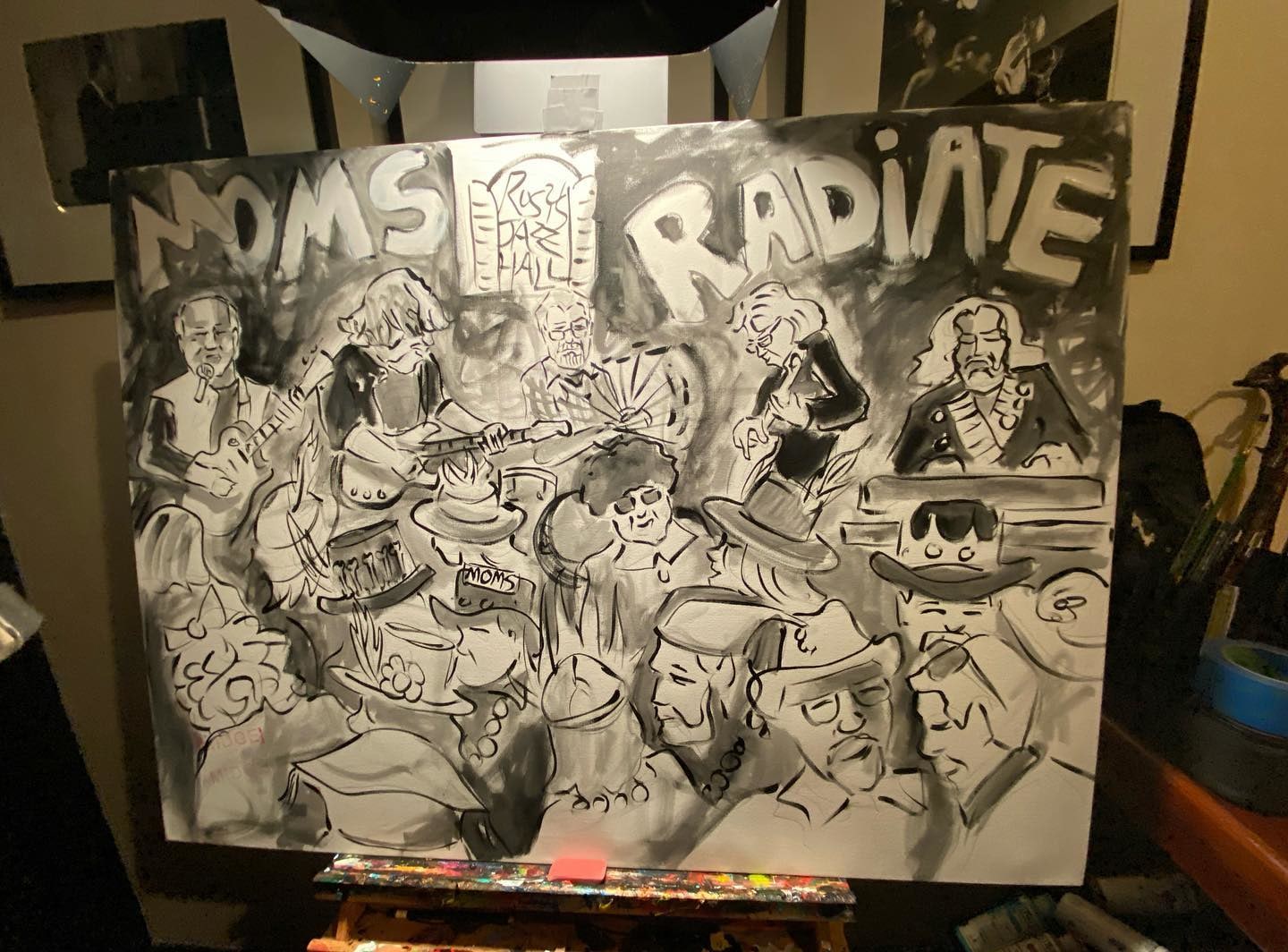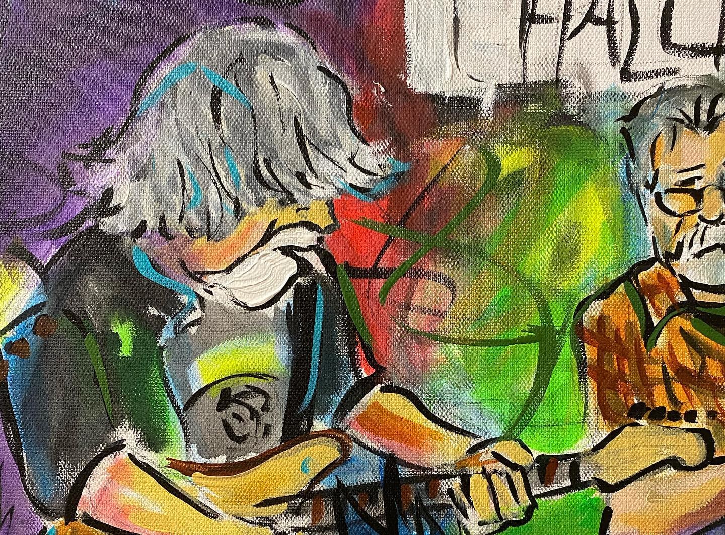 This painting of Raw Oyster Cult was painted by Frenchy on February 18th, 2022 for the MOMs Ball before Mardi Gras at Rosy's Jazz Hall.