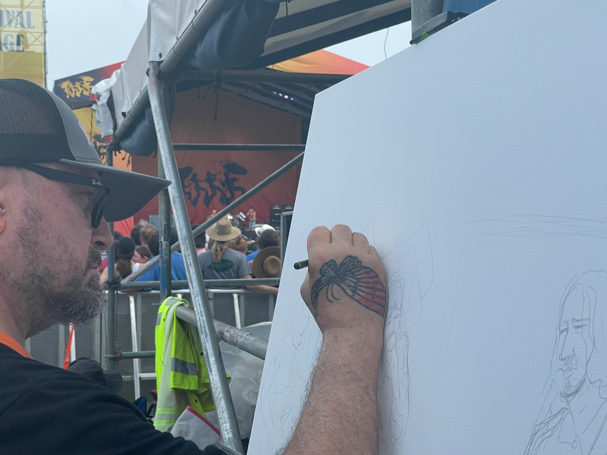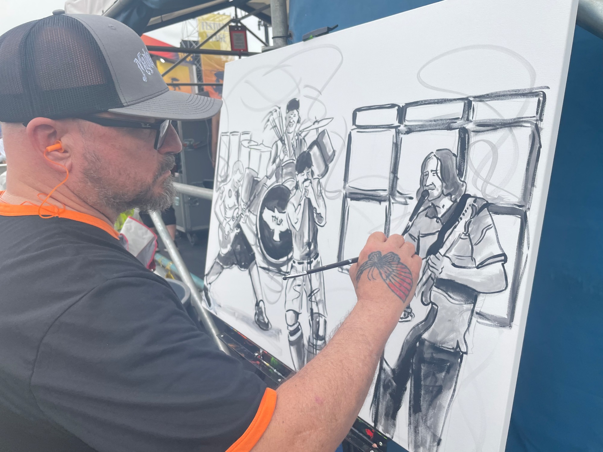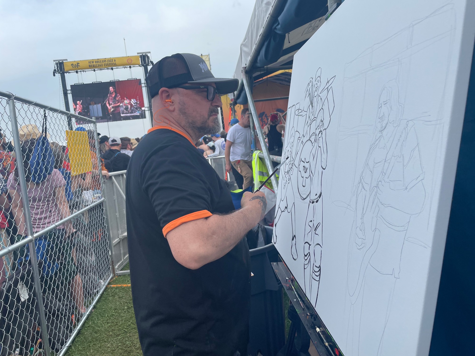 This painting of the Red Hot Chili Peppers was produced at the 2022 New Orleans Jazz & Heritage Festival.