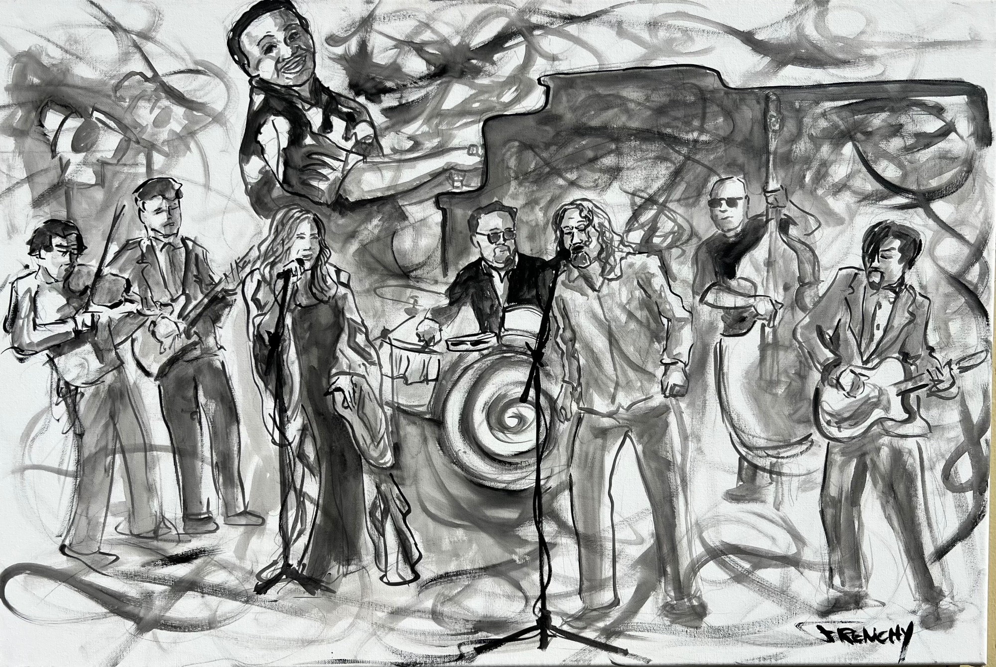 The painting radiates the vibrant spirit of the festival. Frenchy's dynamic brushwork and vivid color choices breathe life into the surrounding crowd, whose faces reflect a kaleidoscope of emotions—joy, excitement, and pure admiration. The artist masterfully captures the essence of the New Orleans Jazz Festival, encapsulating its pulsating energy and the unifying power of music.
