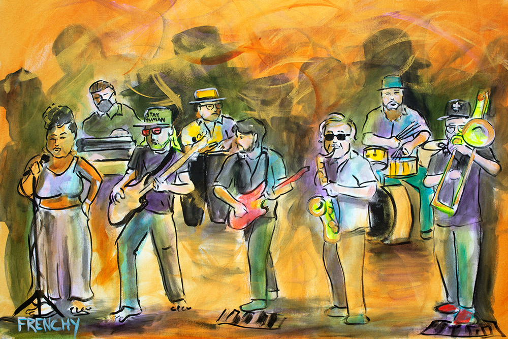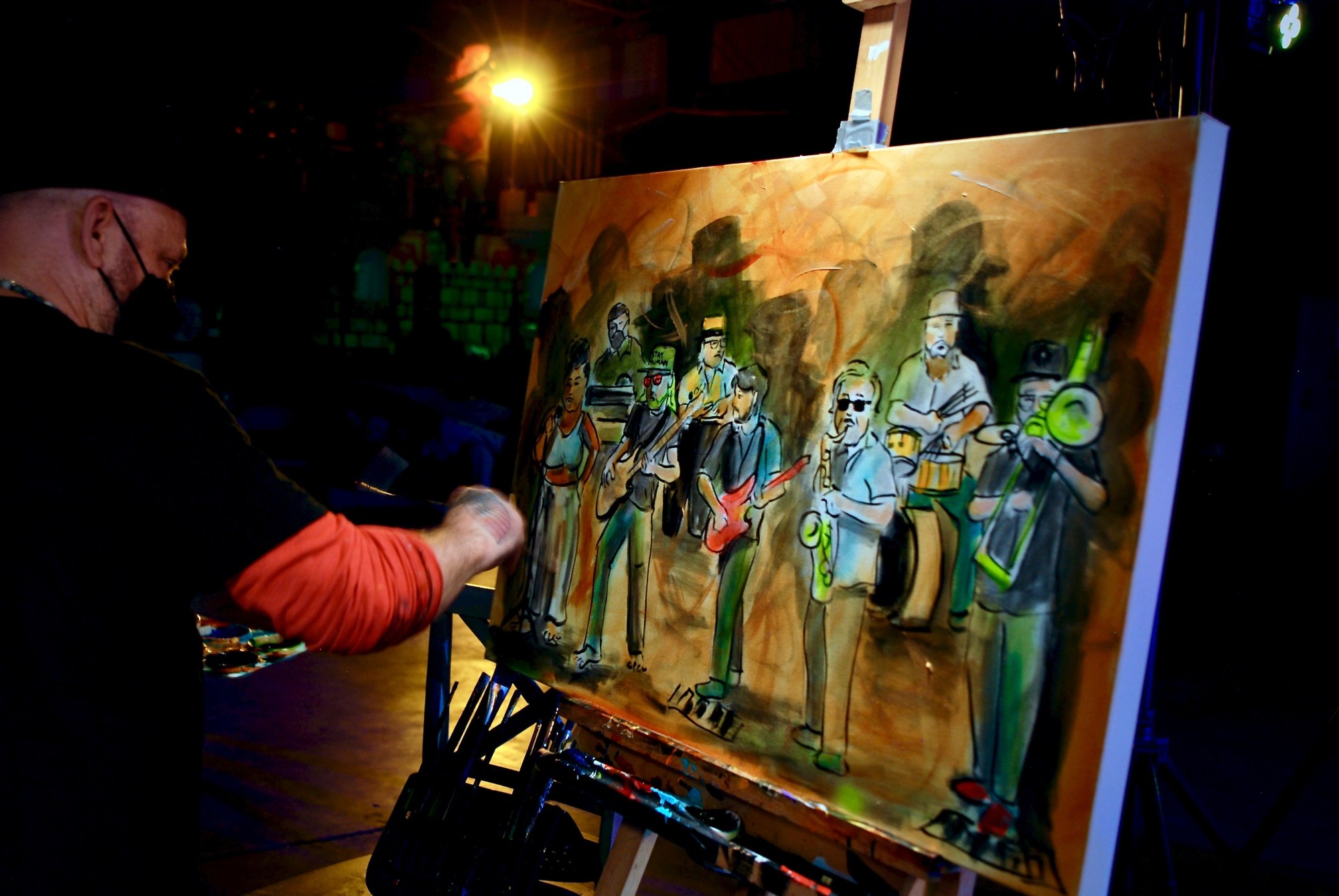 This painting of Sam Price & the True Believers was produced on September 22nd, 2021 at The Funky Uncle Lounge.