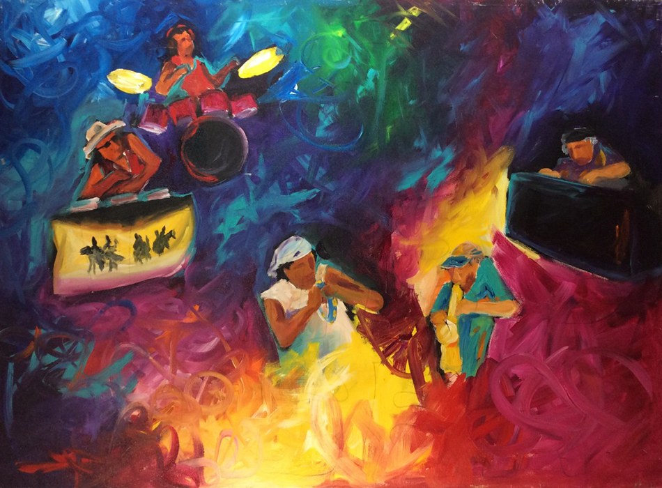 This painting of The Neville Brothers was produced live at New Orleans Jazz & Heritage Festival.