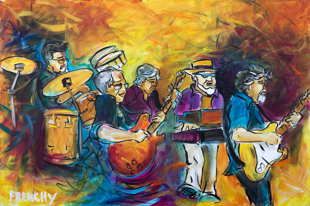 This painting of the Radiators was produced live during the 2014 New Orleans Jazz Festival.