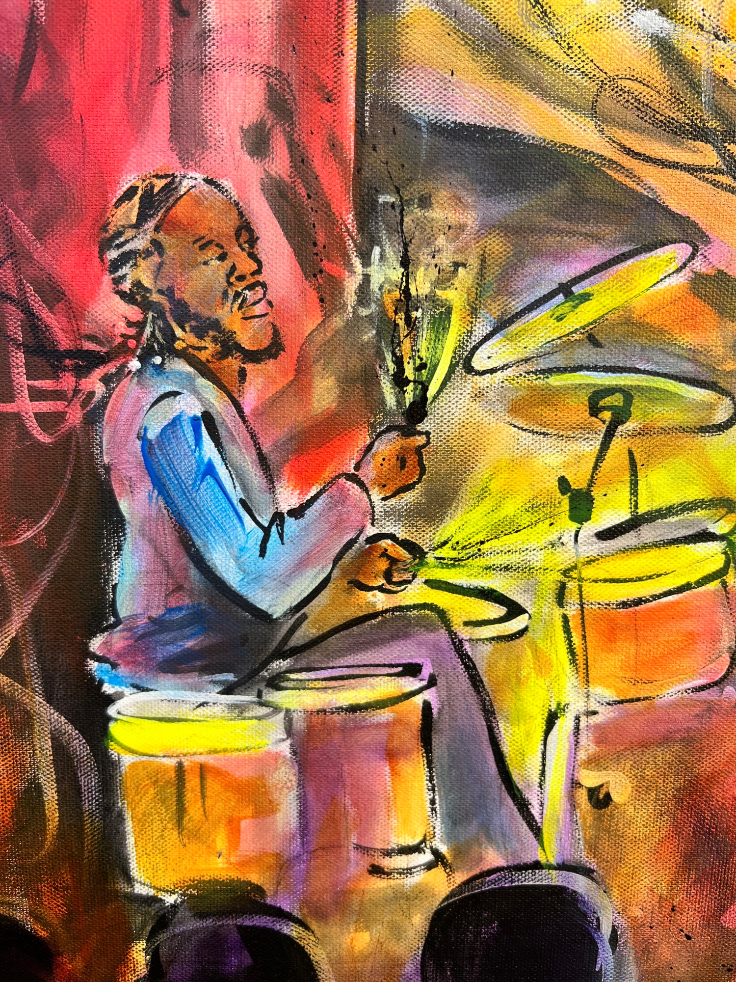 This painting of The Trio featuring George Porter Jr, Terrance Houston and Christ Atkins was produced by Frenchy at the Maple Leaf Bar in New Orleans, Louisiana.