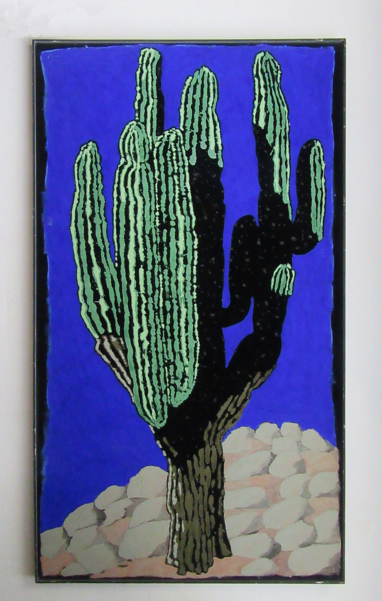 "Die Wüste lebt, Wüsten-Kaktus" 2007, Mischtechnik/Samt, 230 x 130 cm