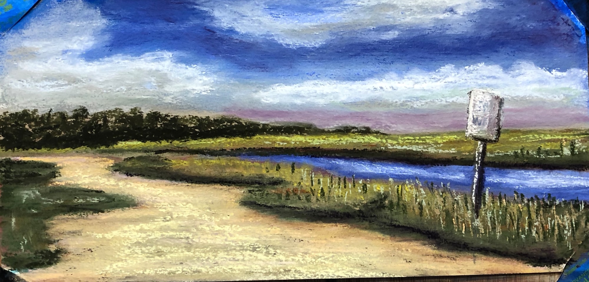 Sunday morning meditational “No Wake, Faunce Landing, Absecon, NJ” 10x6 Pastel on prepared paper.