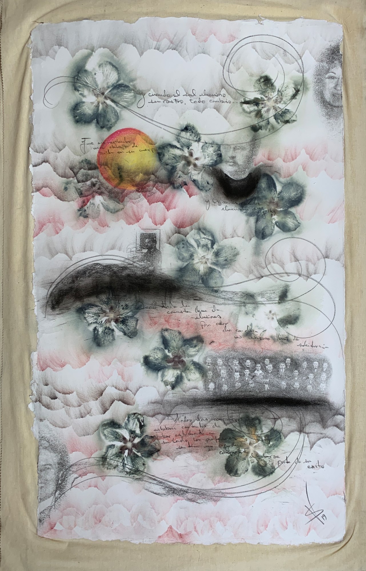• Floral pigments, charcoal, grafic paint and black ink on cotton hand made paper