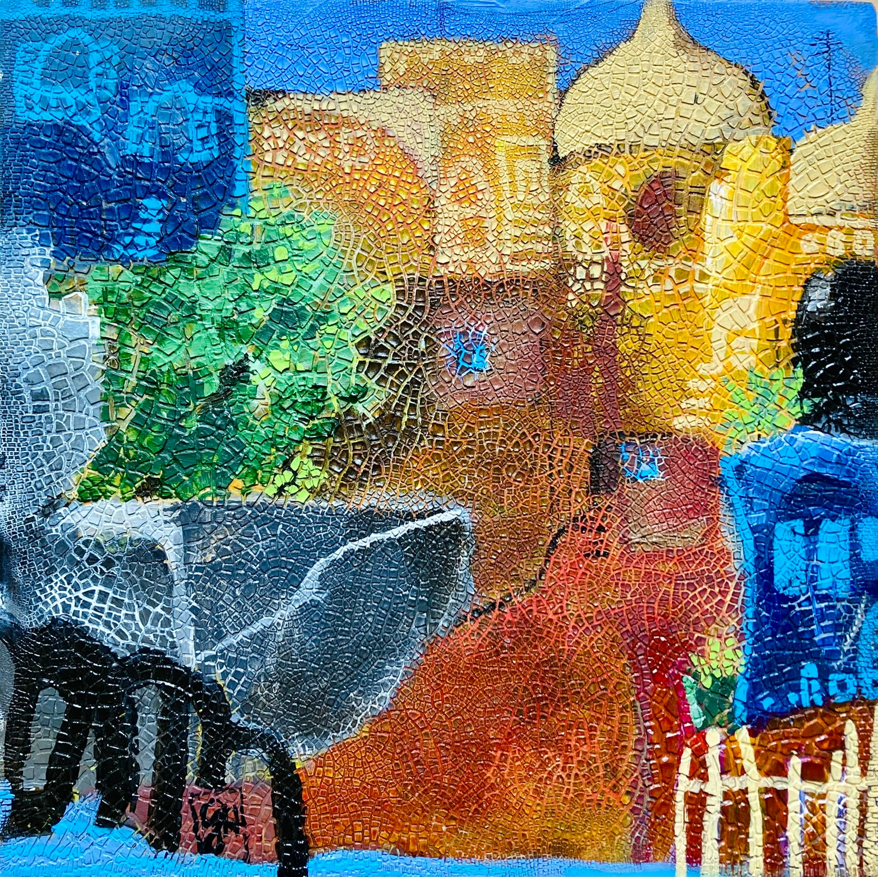 Acrylic and Crackle paste on wood