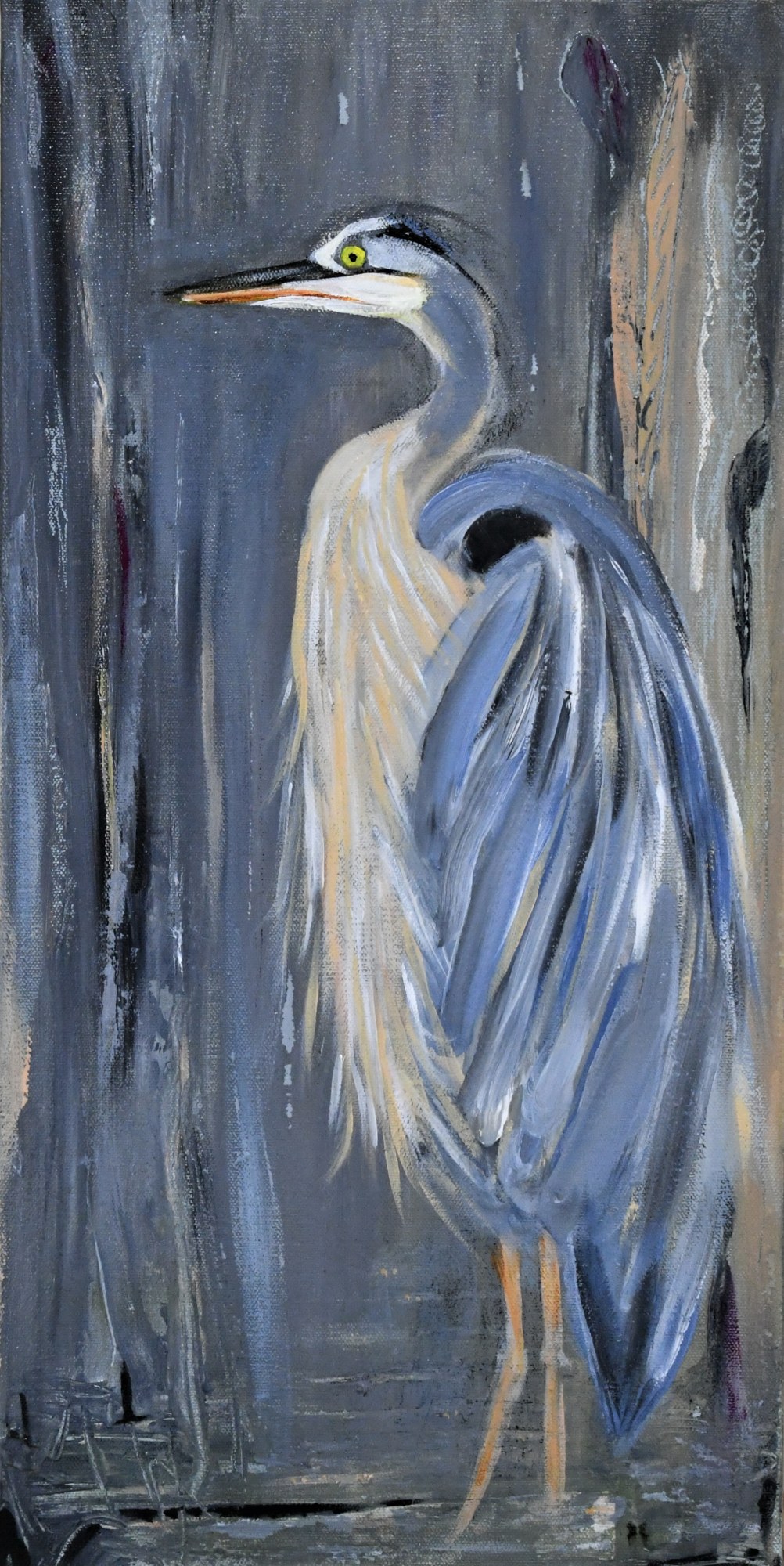 On Vancouver Island we are fortunate to get a glimpse of the still and calm associated with our West Coast Herons. A joy to see and an honor to paint.