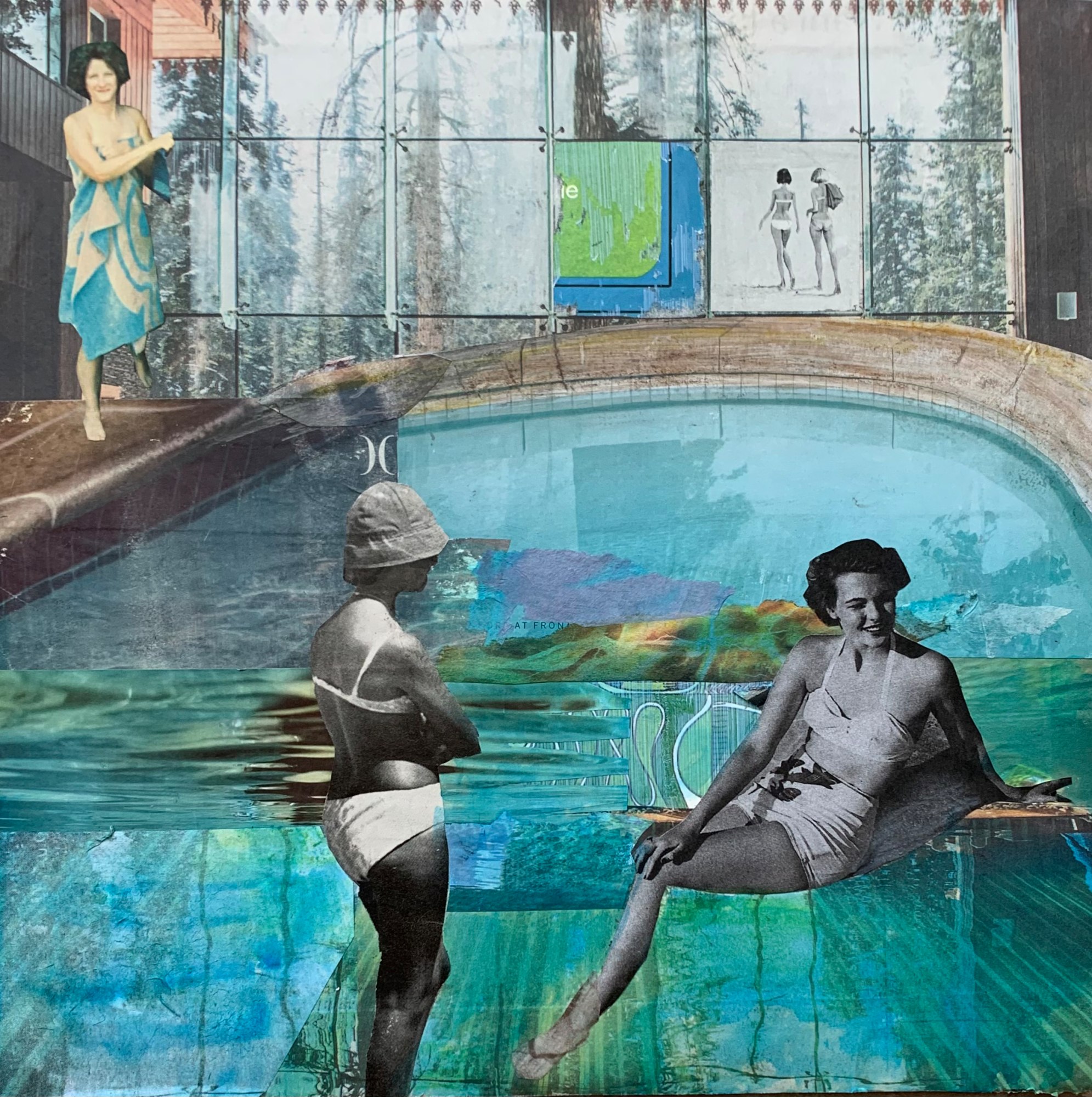 One of the series entitled Recomposed Memories. The collage was built on a vintage record cover with the record still part of the art. Framed in an album cover frame, unglazed.