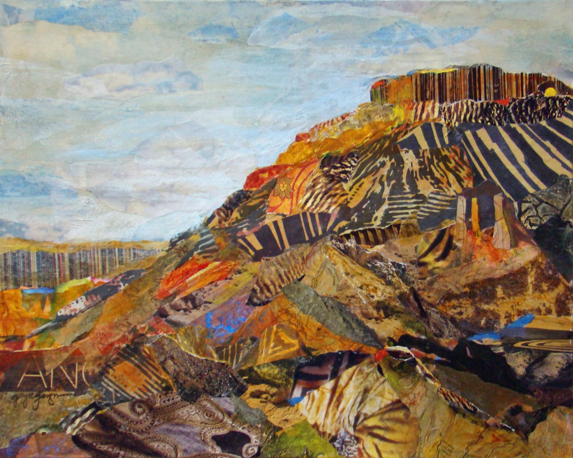 This is another iteration of Mt. Garfield done with several book images. I did it for the Art Center Benefit Auction in 2014 where it sold. It is done on a wrapped canvas and probably framed.