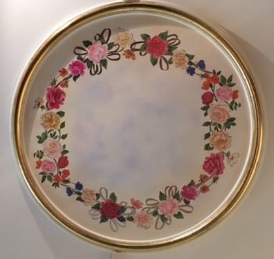Roses painted on plaster ceiling rose. Ready to be glued in the center of your ceiling and add a chandelier or a pendant to your choice.